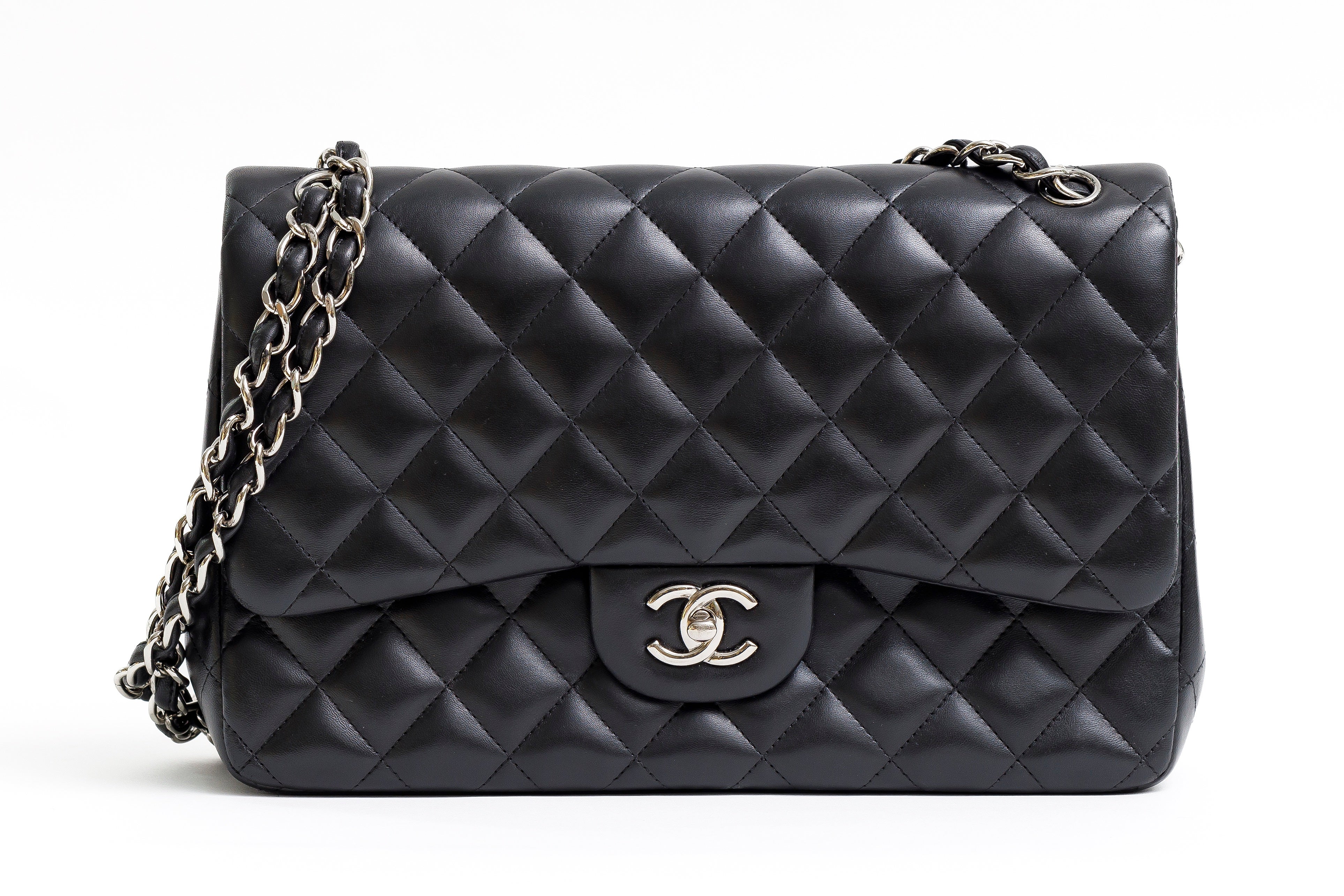 Módní dům Chanel pro změnu zastupují model Jumbo Double Flap, který v 50. letech proslavila sama Coco Chanel. Dvojitý klapkový závěr, propletené logo CC, pozlacené kování a vyšívaný vzor na kůži přispívají k nadčasovému vzhledu kabelky. Vyvolávácí cena kousků v tmavě růžové a černé barvě, vyrobených z jehněčí kůže, začíná na 100 000 Kč.
