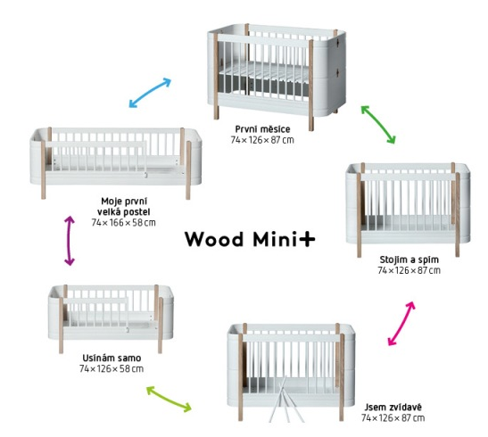 „Postýlka Mini+ se stala ikonou. Krásná, chytrá a hravá,“ říká Šárka Richtrová z pražského studia Viabel, které u nás značku exkluzivně zastupuje. „Postupně ji můžete proměňovat: z postýlky pro miminko s nebesy na malou postýlku, kterou následně můžete prodloužit na postel pro předškoláka. Nebo ji proměnit na polovysokou postel se schovávačkou či prostorem pro hraní. A pokud máte dvě děti a chcete chytře využít prostor, vytvoříte z ní palandu. Je prostě jedinečná a chic. Od narození do 9 let.“