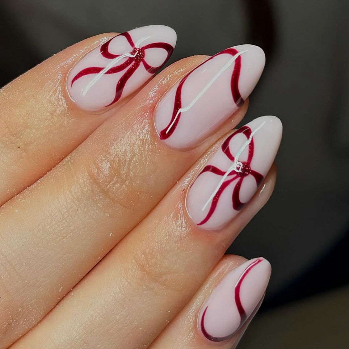 Červené mašličky: Elegantní detail pro všechny délky nehtů