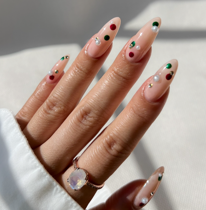 Barevné tečky jako vánoční světýlka: Hravý a jednoduchý nail art
