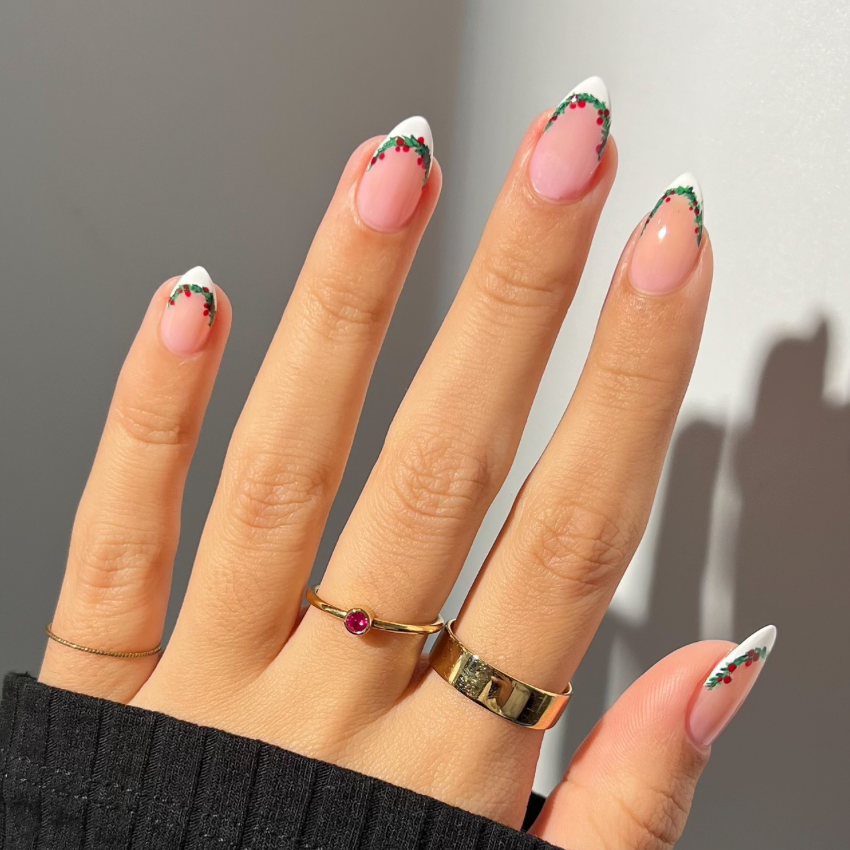 Ikonický symbol vánočních dekorací ve velkém ovlivnil i letošní trendy vánoční manikúry. Zelené větvičky s červenými plody nail artisti vyvedli v jemném designu, přičemž pracují se sytě zelenými, autentickými odstíny. Tento trend se hodí pro ty, kteří hledají originální styl, trochu svátečních barev, ale zároveň se nechtějí ani na konci roku vzdát přirozeného podkladu, na kterém tento nail art vypadá nejlépe.