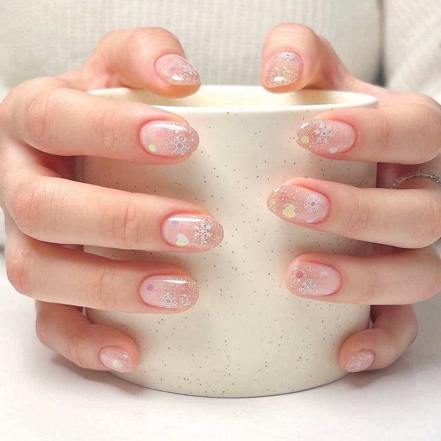 Trend světelných girland je tu pro všechny, kteří milují glow efekt. Jemné linky připomínající kabely světýlek, drobné tečky jako žárovičky, kombinace průsvitných a třpytivých laků... Výsledkem jsou vánoční nehty, které vypadají, jako by na nich tančilo světlo. Perfektní volba na prosincové večírky i Silvestr, kdy chcete, aby vaše ruce vypadaly, jako by na nich visel ten nejkrásnější řetěz světýlek zvěstující lepší časy.