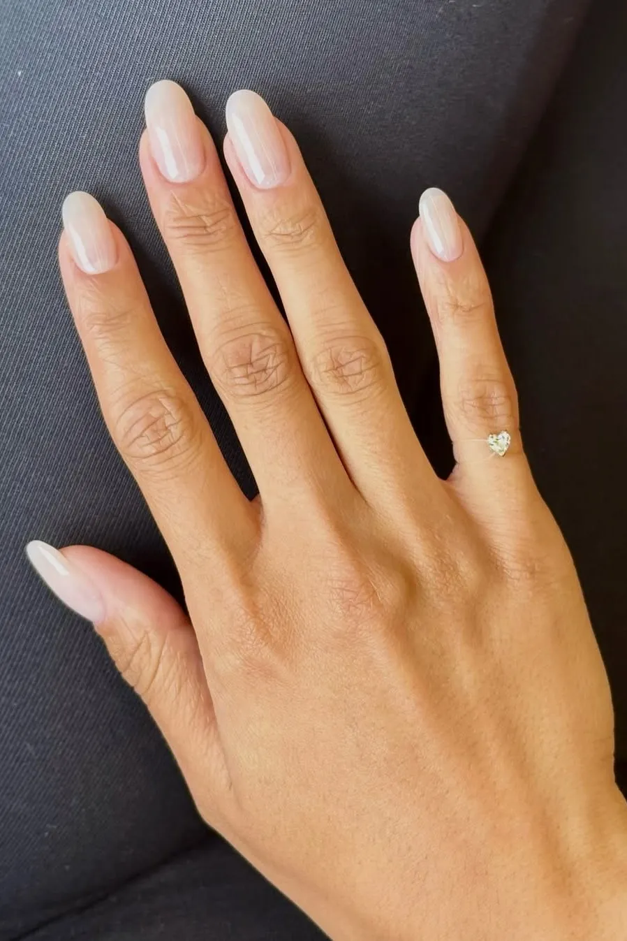 Její textura je jiná než u klasického čirého laku. Není ani úplně lesklá, ani mléčně zakalená. Má opalizující finiš s jemným leskem, který nechá vyniknout přirozenou kresbu nehtu a zvýrazní jeho tvar i barvu. Je to, jako by nehet dostal svou nejlepší možnou verzi – bez práce, ale s maximálním vizuálním efektem. A hlavně se hodí ke všemu. Stejně dobře doplní vzdušné boho šaty jako klasické džíny, sluší k bílé v létě i k černé v zimě. Je minimalistická, decentní, a přesto nikdy nudná.