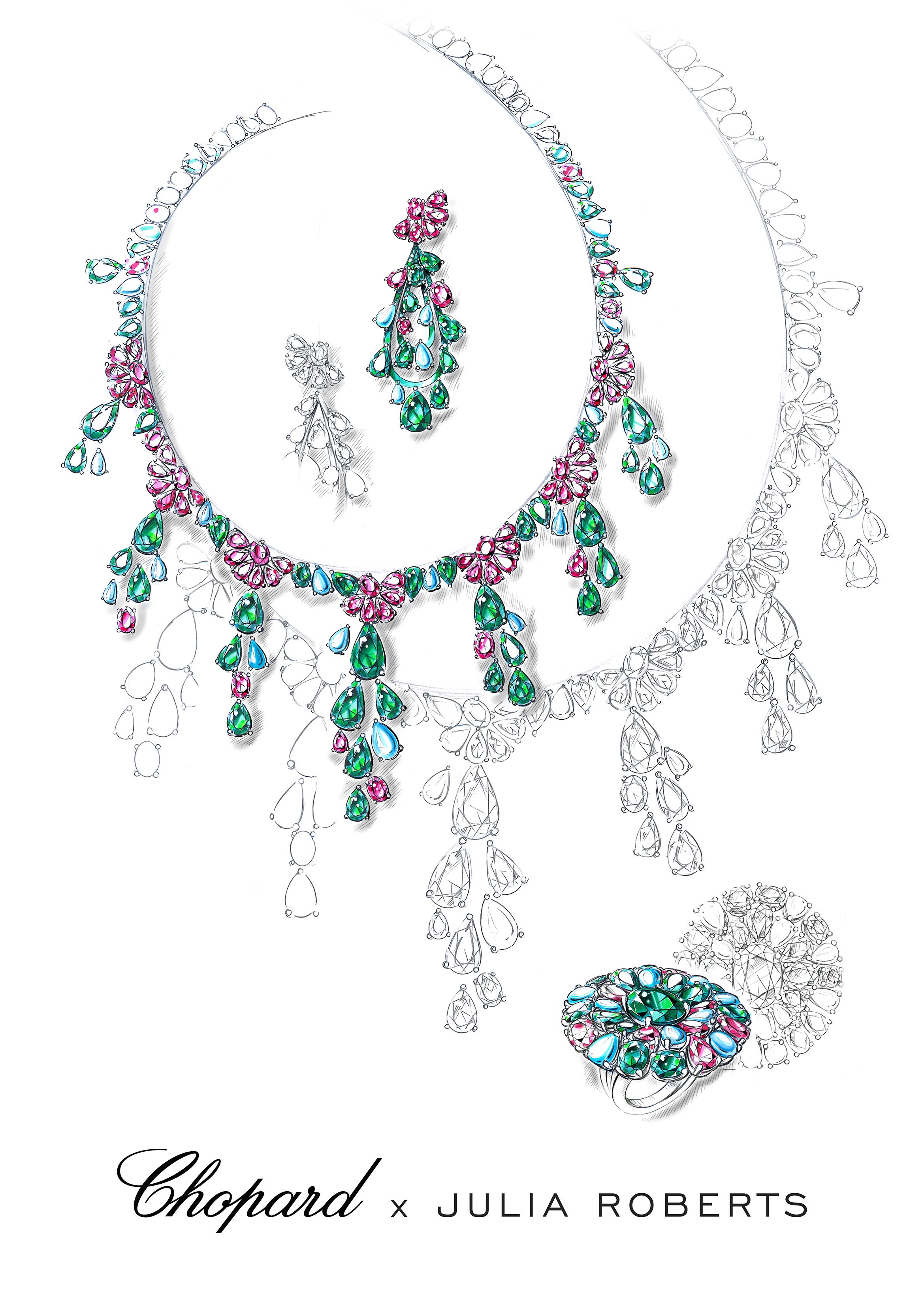 Herečka Julia Roberts se před rokem stala tváří Chopard, a tak není divu, že první letošní uváděné kousky ze šperkové produkce značky vynesla ona. A nejenže je vynesla, ale také se s uměleckou ředitelkou Caroline Scheufele podílela na jejich navrhování. Vznikla tak kapsulová kolekce Haute Joaillerie Chopard x Julia Roberts.