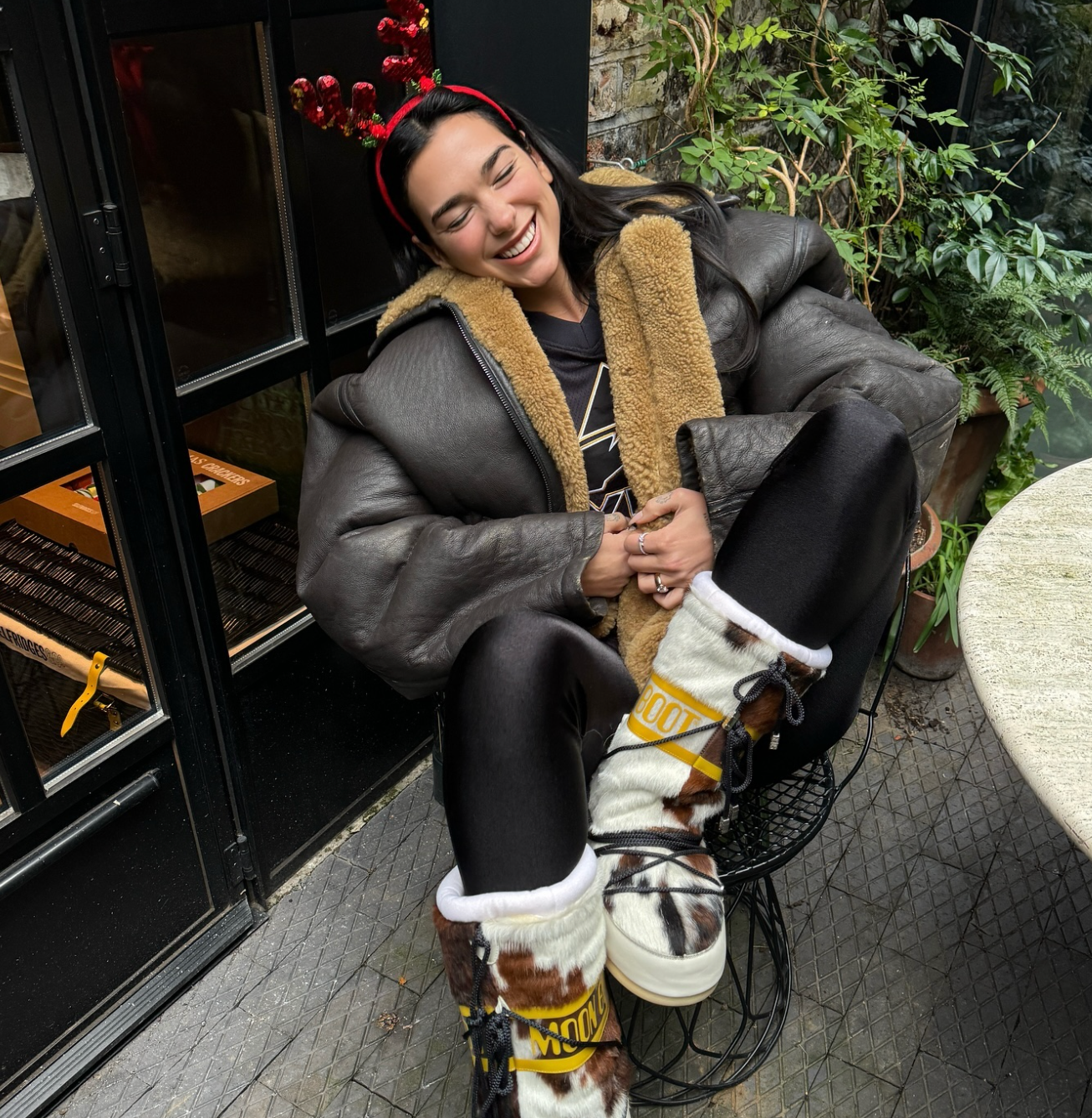 Tyto boty jsou k dispozici v nejrůznějších barvách a stylech od chlupatých po vzorované. Jsou perfektní volbou k pohodlnému sportovnímu outfitu, jako jsou legíny a péřová bunda, nebo k elegantnějšímu vzhledu, například s džínami a kožešinovým kabátem. Například Dua Lipa zvolila speciální limitovaný model s trendy potiskem kraví srsti a žlutými detaily.