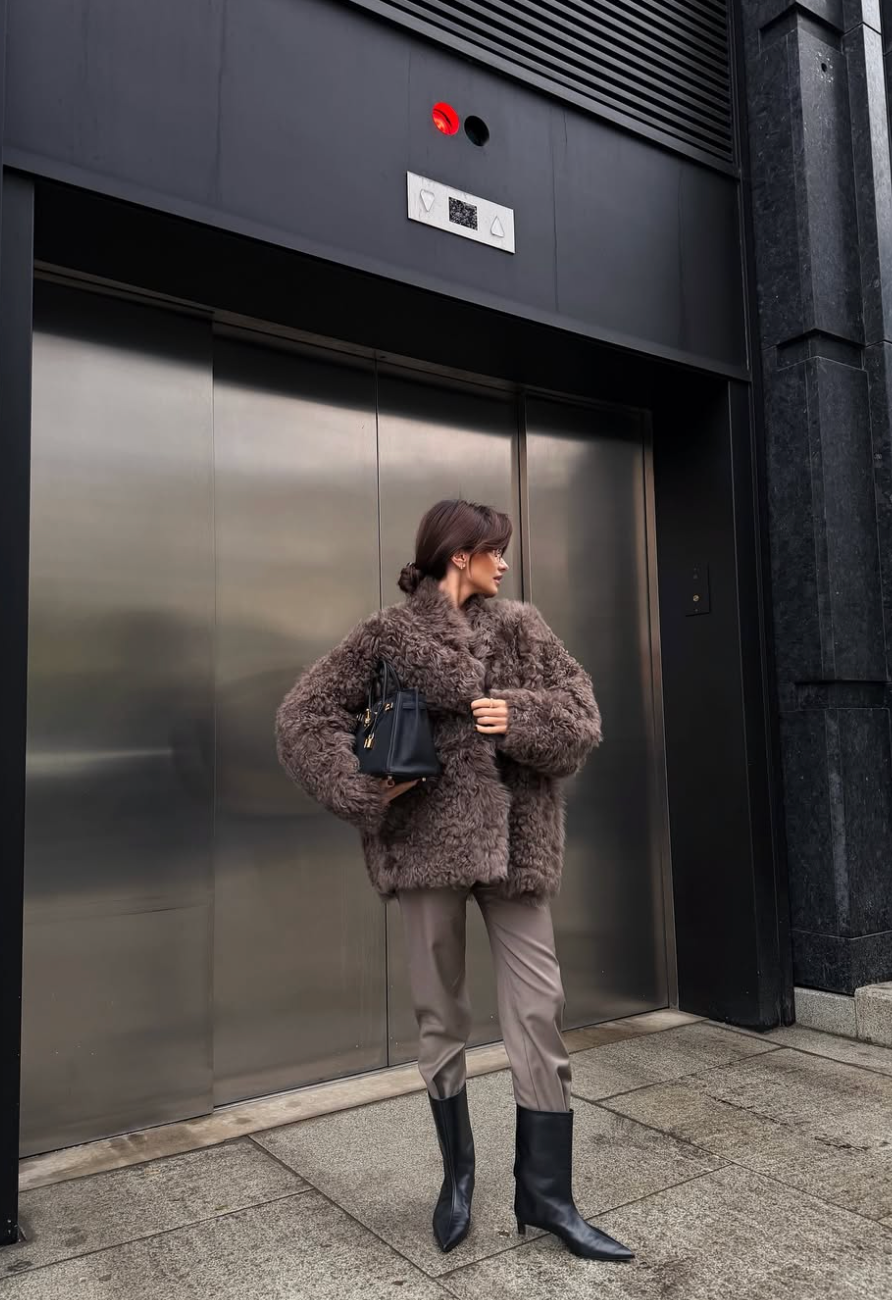 Pokud milujete trendy outfity s moderním nádechem, tento look je přímo pro vás. Sáhněte po svých oblíbených volných kalhotách, určitě máte alespoň jedny ve skříni, a doplňte je zimní klasikou – kožichem a kotníčkovými botami. Podle svého vkusu nechte kalhoty buď přes boty, nebo je zasuňte dovnitř, takže budete vypadat výrazněji a všem ukážete, že módu máte naprosto pod kontrolou.
