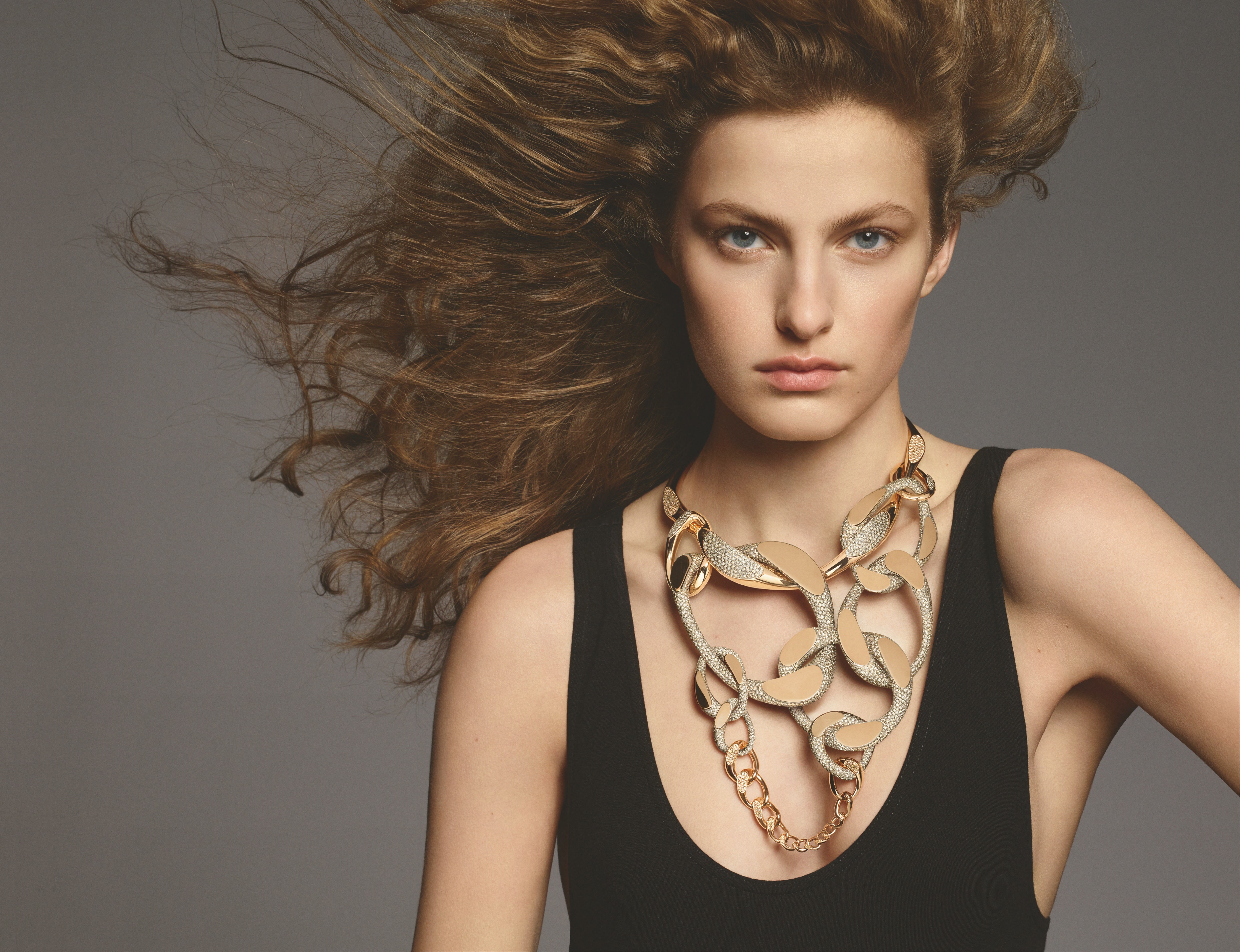Dají se nosit několika způsoby. Vpředu, vzadu, na nahou kůži nebo přes černý rolák. Jako jednoduchý řetěz nebo v několika řadách i s přívěsky z růžových opálů, černého jadeitu a perel. Neviditelné spoje, optické iluze. Kov v nesčetných podobách a zpracování, jaké se jen tak nevidí.