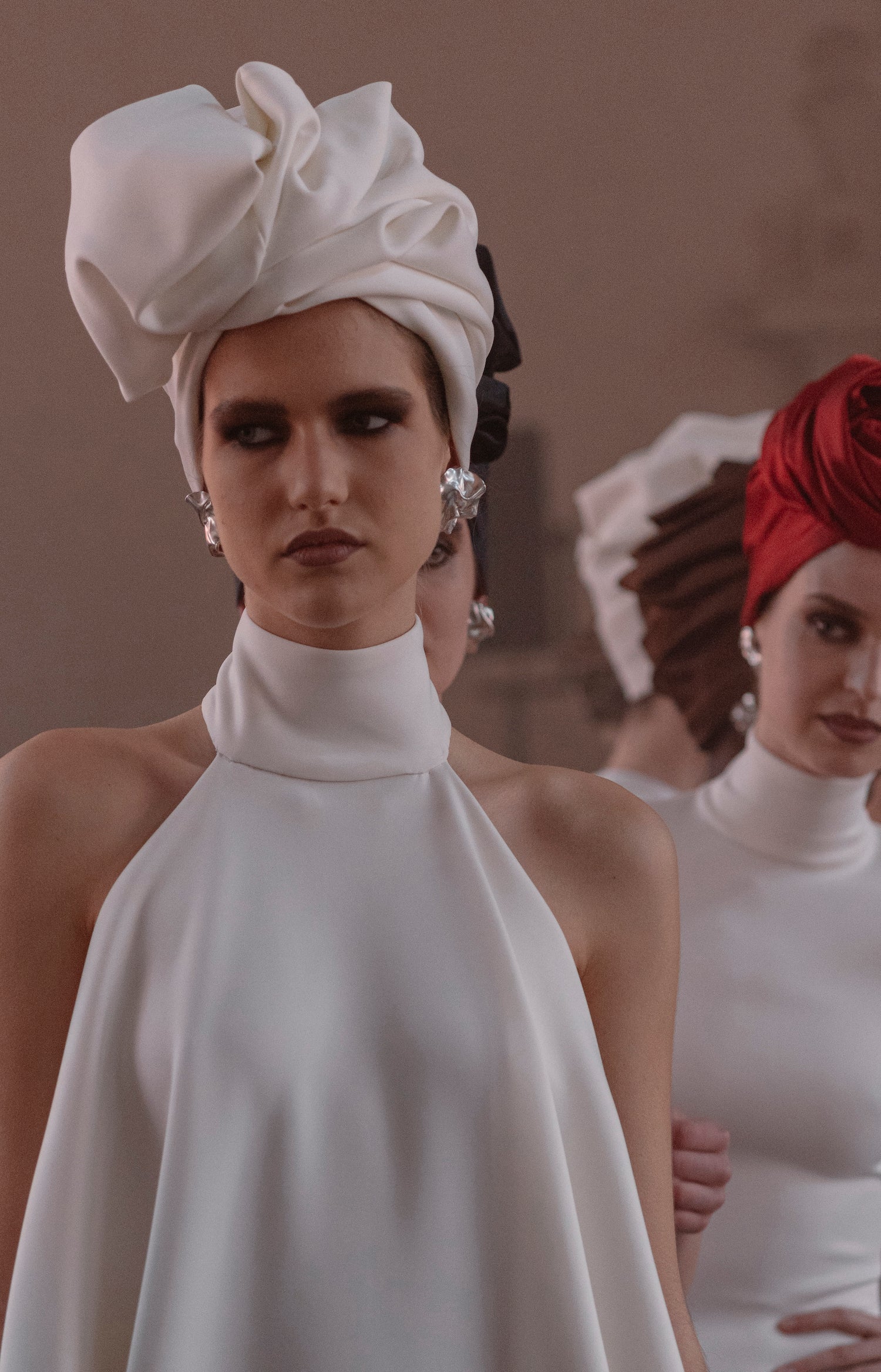 S Tomášem jsme kolekci konzultovali od samého začátku. Představil mi moodboard plný italské architektury, filmových scén, nástěnných maleb a popsal atmosféru, kterou si přeje navodit. Při našich schůzkách mluvil o inspiraci létem, hotelovým lobby a bohatými ženami, které se tam potkávají. Mně se zase při té představě vybavily šátky vlající při jízdě cabrioletem, omotané kolem plavek, ale i ty, co jsem si pamatovala z renesančních maleb.