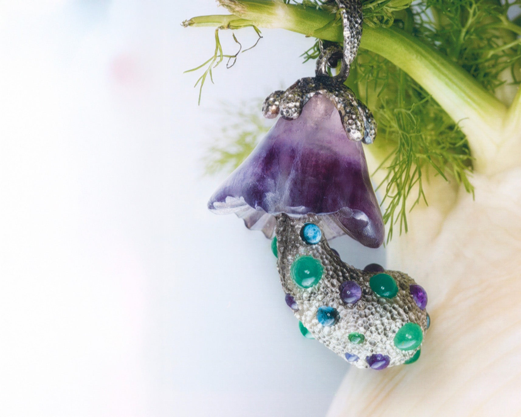 „V dnešnej dobe sa už takmer vôbec nezastavíme,“ hovorí mi. „Preto sa nad svetom zamýšľam cez šperky – chcem ich premeniť na objekty z fantazijného sveta.“ Od drahokamových motívov húb až po exkluzívne kúsky zo zlata a striebra – Kocianová vytvára nadčasové talizmany, ktoré budú v rodinách putovať generáciami. Šperk je pre ňu viac než len doplnok – je to posolstvo, odkaz a spojenie medzi človekom a prírodou.