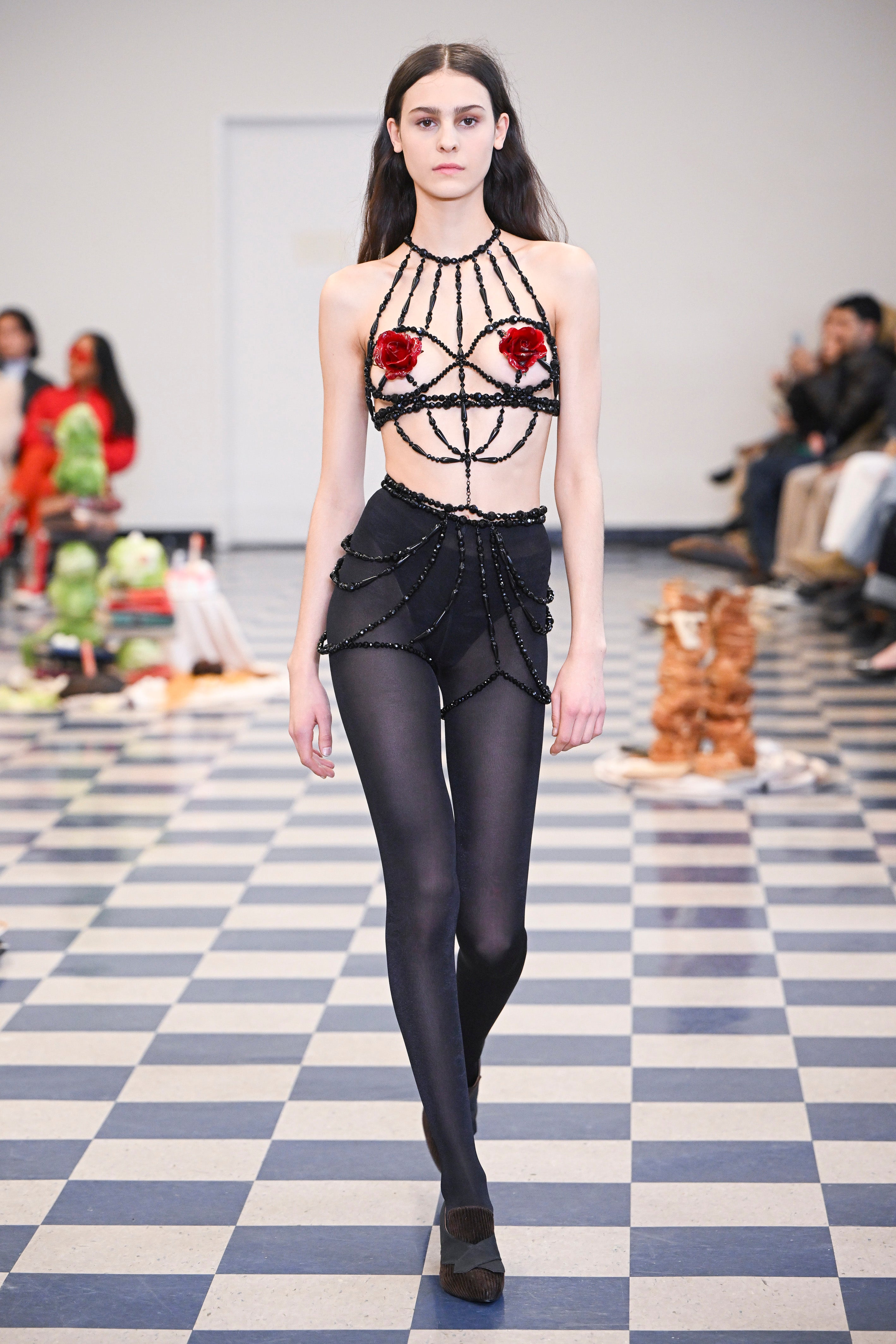 Tohle takřka nahaté hnutí dodalo odhodlání do studií hybatelů soudobé módní estetiky. A tak se nejprve na jaře pro takzvané bare legs rozhodli lídři jako Bottega Veneta nebo Coperni. Na podzim se pro rozšíření tohoto odvážného trendu rozhodli ti skutečně přesvědčení. Třeba u Miu Miu poslali mezi diváky modelky bez kalhot, včetně Emmy Corrin, která celou show jen v kalhotkách dokonce uzavírala. Spodní prádlo a péřovka? To jsou nové koktejlky.