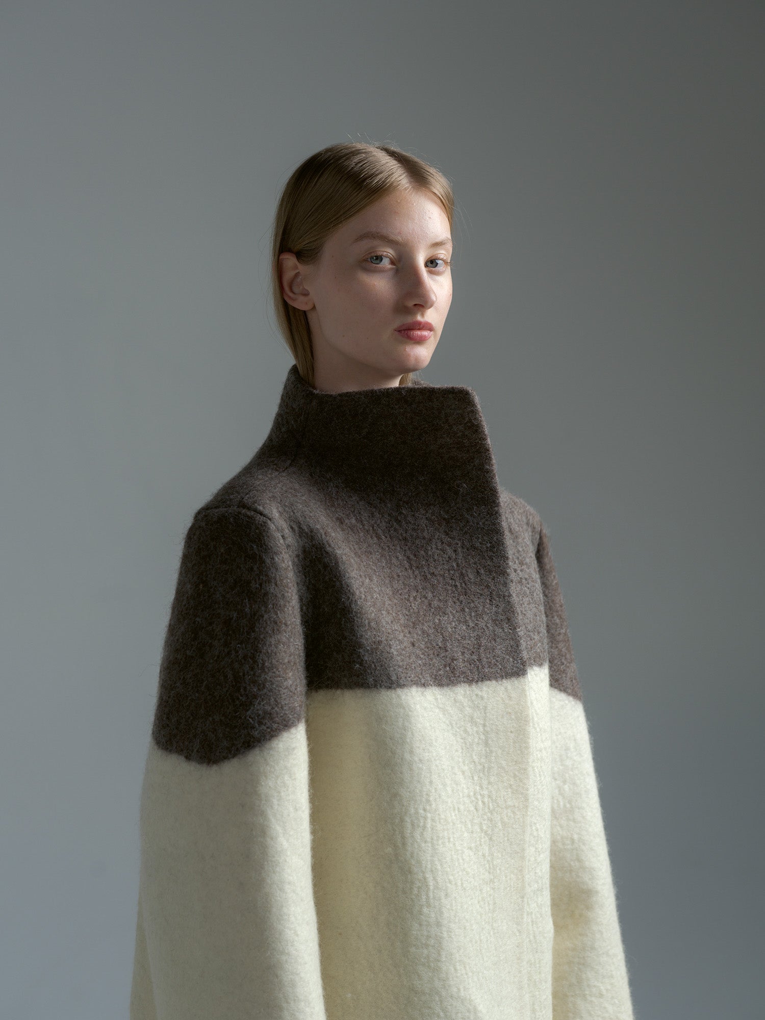 „Pamatuji si, že to byl vcelku tlak. K přijímačkám do Itálie jsem potřebovala portfolio. Zahrnula jsem tam kolekci ručně malovaných šatů, které jsem už předtím vytvořila víceméně doma, a dokonce jsem si je nechala vyfotit. Byl to kus práce, když na to ale zpětně koukám, vidím spoustu chyb. Ale jinak to nešlo, Istituto Marangoni jsem si prostě vybrala.“ Když Anežka Nováčková bilancuje, je cítit, že věci nebere na lehkou váhu. Včetně svého aktuálního působení v Miláně. Pevná pracovní doba, která se na severu Itálie na rozdíl od zbytku země přísně dodržuje, jí dovoluje zavolat si s námi jen ráno nebo večer po devatenácté hodině. Když si vyměňujeme zprávy, představuji si ji v uniformě. Na otázku, jak se domlouvá s profesně zkušenějšími kolegyněmi, odpovídá, že rozumět italsky jednoduše musela. „Ale já jim odpovídám anglicky, tak daleko se svou italštinou ještě nejsem,“ směje se návrhářka do telefonu. Stále nechápu, jak se jí z gymnázia v Litomyšli podařilo dostat se až do centra italské módy. „Já jsem se vždycky učila sama a rychle, s anatomií střihu mi pomohla deskriptivní geometrie a maminka a zbytek pak přijde tak nějak sám, řekla bych. Na studiu v zahraničí je skvělé naslouchat inspirativním osobnostem z oboru a jejich zkušenostem. Skrze jejich optiku se vám daří přicházet na věci, na které byste třeba sami nepřišli,“ myslí si Anežka. „Skvělá byla přednáška Pierpaola Piccioliho nebo Hanana Besovice, který se zabývá teorií módy a vede populární instagramový účet @ideservecouture. V mé práci mě nejvýrazněji ovlivnili Davide Petraroli, kreativní konzultant, díky němuž jsem začala na kolekce pohlížet trochu jinak, a umělec Julijonas Urbanos. Na sedmnáctém architektonickém bienále v Benátkách před třemi lety představil projekt Planet of People. Ten se ostatně stal inspirací pro moji kolekci, kterou jsme měli jako podmínku dovršení bakalářského studia.“