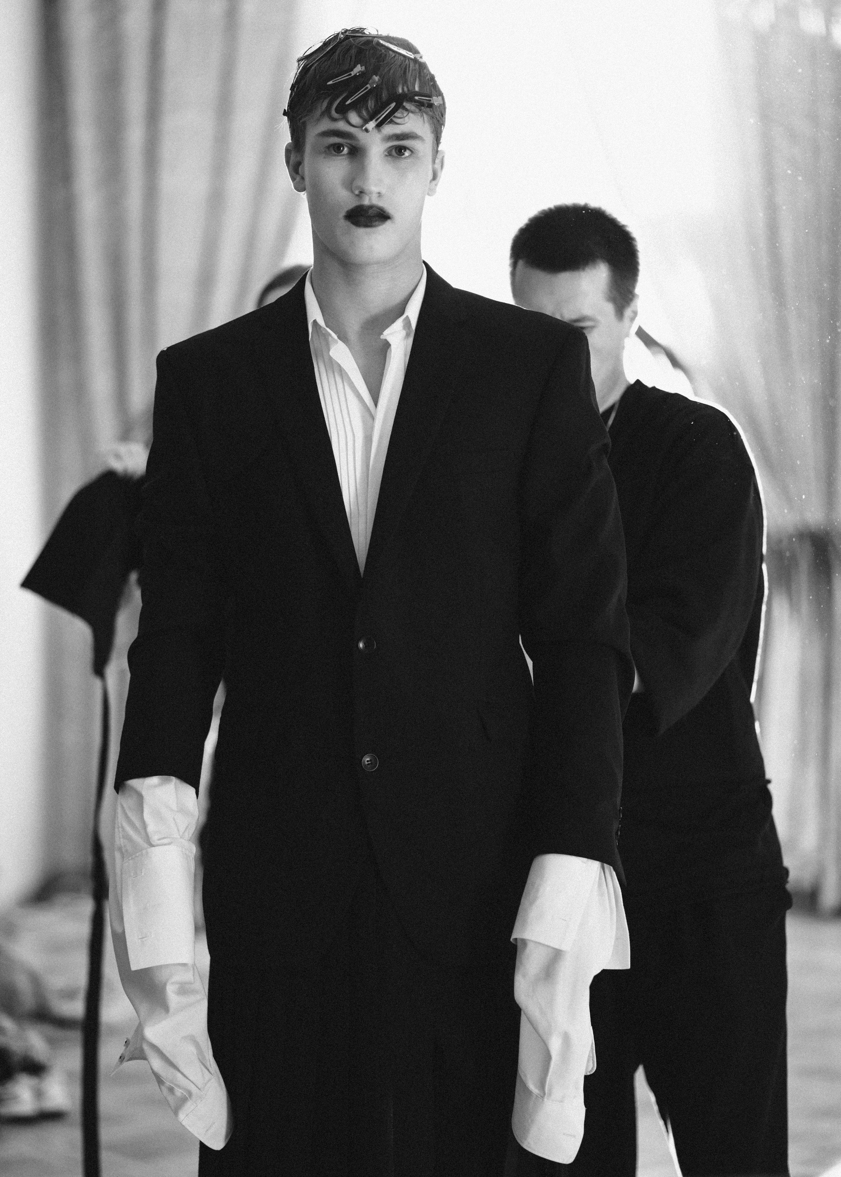 Pomyslně se tímto hlasem stala v pořadí už druhá přehlídka značky upcylingových oděvů Sure Curated. Kolekce Bite me našla inspiraci v symbolice vampýrů a fiktivní kultuře, která byla kolem těchto záhadných nemrtvých vystavěna. Křehkost minulé kolekce, kde byl kladen důraz na hloubky v průsvitnostech, tak tentokrát vystřídala jakási hutnost rezonující skrze kabáty, saka a výrazné doplňky. Jako by kolem diváků procházela výzbroj lovce lidských duší. Každý look nabízel několik vrstev, které ale překvapivě ladily v harmonickém celku. Ať už to byly klobouky, šátky uvázané na hlavě, manžety, krajkové okraje, řasené okraje, pásky, nebo šperky Caroline Gorg.