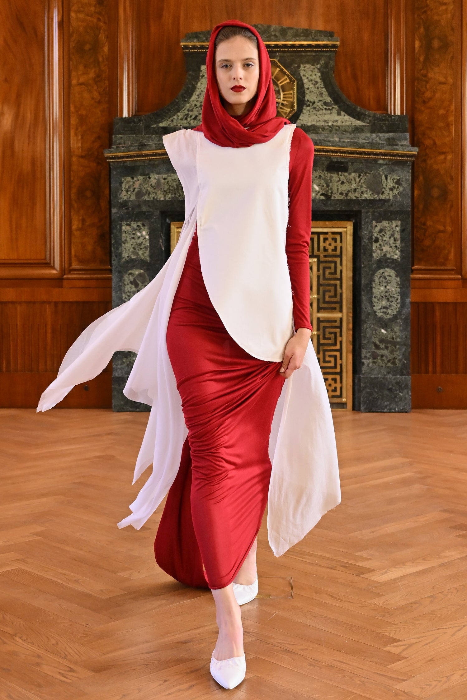 Zdobnou zasedací síň bývalého cukrovarnického paláce tak ještě pozvedla umělecká reinterpretace dávné pověsti. Kreace působily nezvykle, o to víc ale nabízely pohled na jistou formu oděvu, který nepodléhá tlaku sociálních médií nebo názorové většině těch, co určují podobu současného vkusu. Někdo může v takových projektech vidět pouhou manýru. Liběna Rochová však s mladými talenty doručila diskuzi nad dalším druhem návrhářské práce, kterou studenti pro své zdokonalení potřebují.
