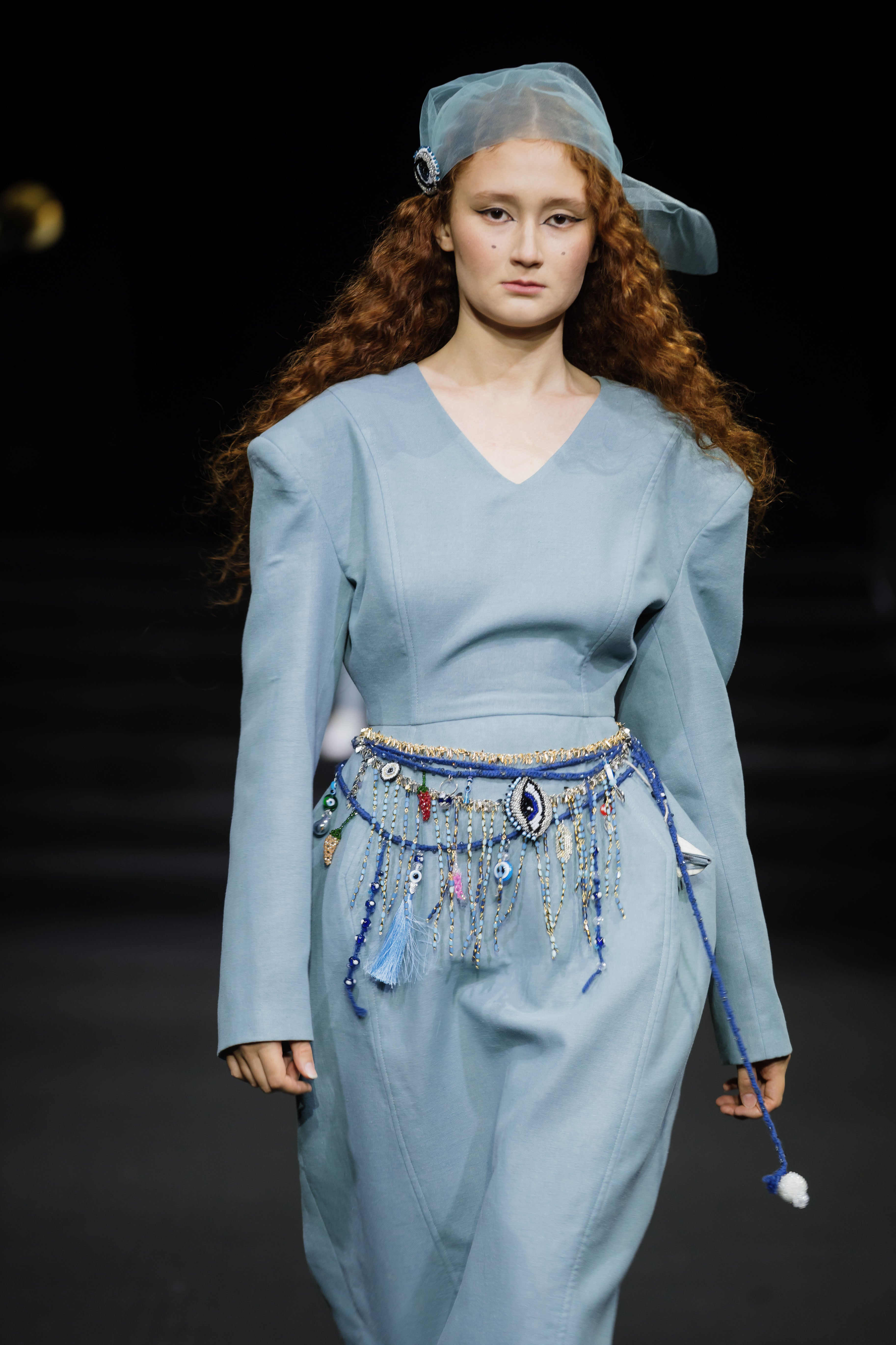 Monochromatické looky, čisté linie a vrstvení materiálů vytvářely dojem duchovní cesty, kde každý detail – skrytý rozparek či jemný záhyb – vyprávěl osobní, tichý příběh. Kolekce Moment of White nabídla klidnou a vnitřně soustředěnou krásu, která na taškentském mole působila jako křehký kontrapunkt k bohatě zdobeným kreacím ostatních návrhářů. Velký plus si designérka připsala za společenské šaty s kapsami.