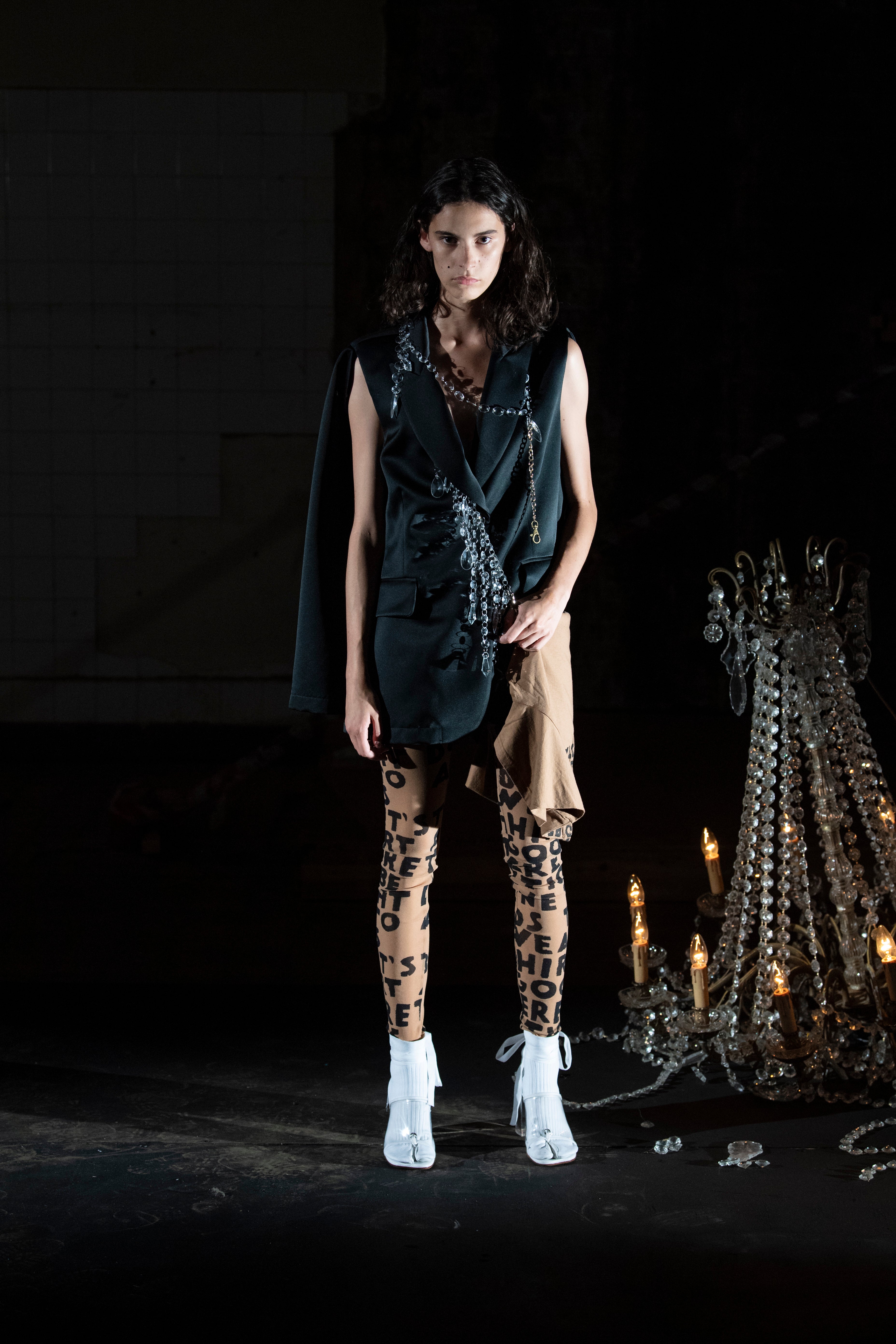 MM6 Maison Margiela navíc i tuto sezónu čerpá ze svého bohatého archivu a staví staré kousky do nových dimenzí - jednou ze zásadních inspirací je totiž idea znovunalezení. MM6 se zamýšlí nad udržitelností a tvrdí, že stejně jako jsou vintage věci recyklovány na bleších trzích, i myšlenky jsou recyklovány, znovu použity a zaktualizovány do nové doby. Proto se v kolekci objevují i zásadní signature pieces značky Maison Margiela, jako je patchworkovaný denim, zničené kůže a tailoring.