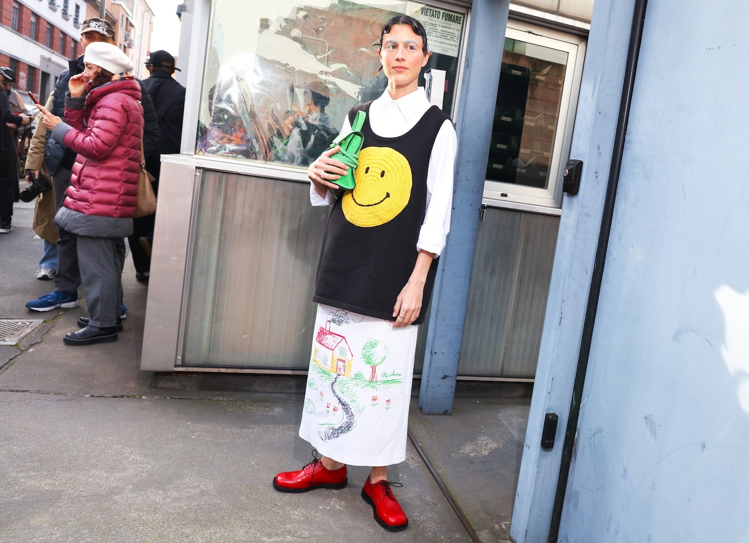 Velkým hitem milánského street stylu se stala zelená, zejména pak olivový odstín, ale nechybí ani neonově zelená. Spousta hostů se zamilovala do trendu loud luxury (do fanklubu patří mj. Francesca Ragazzi, Head of Editorial Content Vogue Italia) a mixují nápadné, často zvířecí potisky s výraznými detaily a okázalými kabelkami. Eklektický mix umocňují kontrasty: Na jednom rohu ulice můžete spatřit velkou večerní róbu a na druhém barevnou teplákovou soupravu, přičemž hosté míří na stejný event.