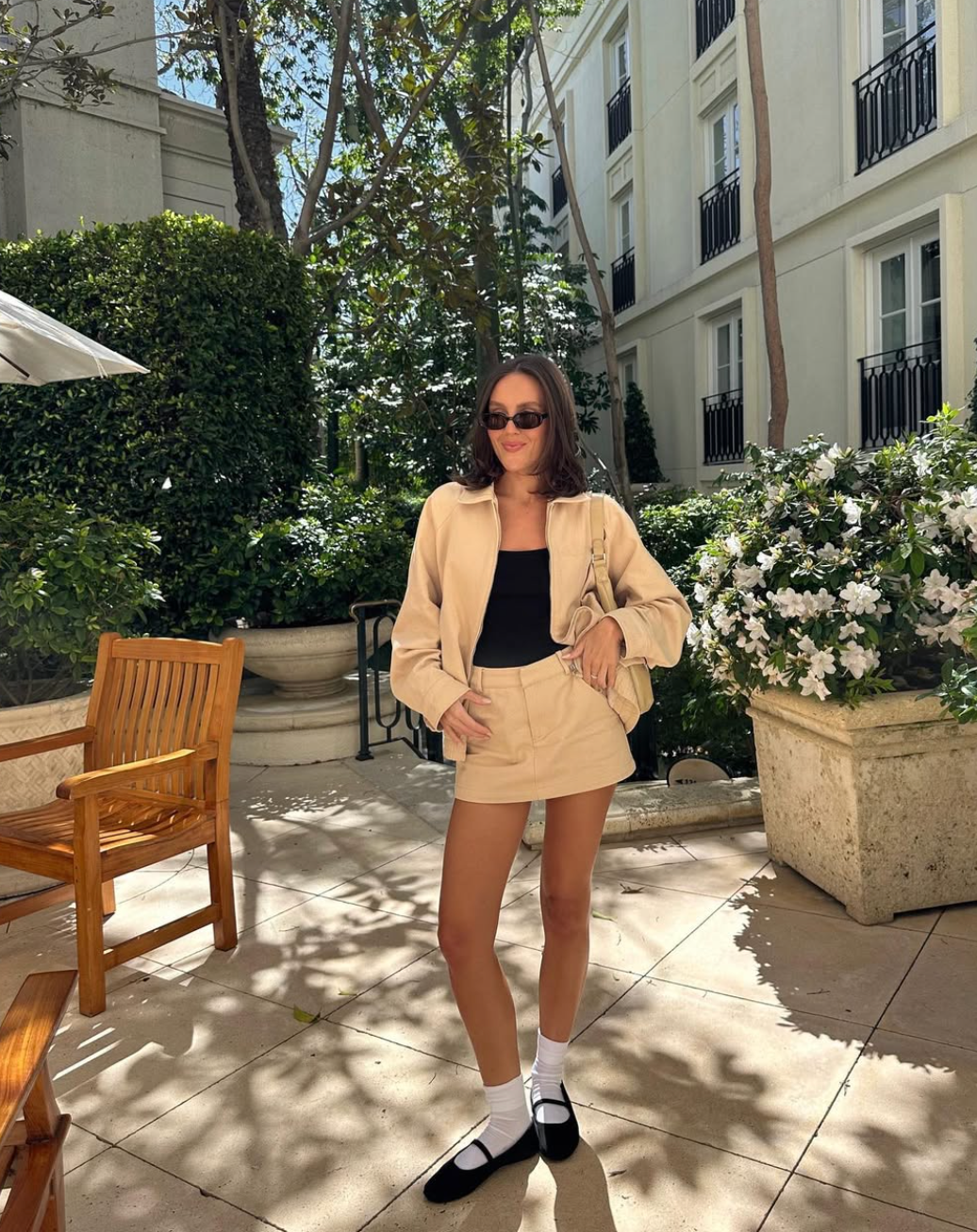 Jakýkoli co-ord set vypadá roztomile, a obzvlášť ty se sukní a bundičkou. Vypadáte v nich automaticky dokonale sladěně a na stylování jsou superjednoduché – stačí přidat obyčejné tílko pod bundu a sladit vše s balerínkami a ponožkami. Voilà, outfit je na světě.