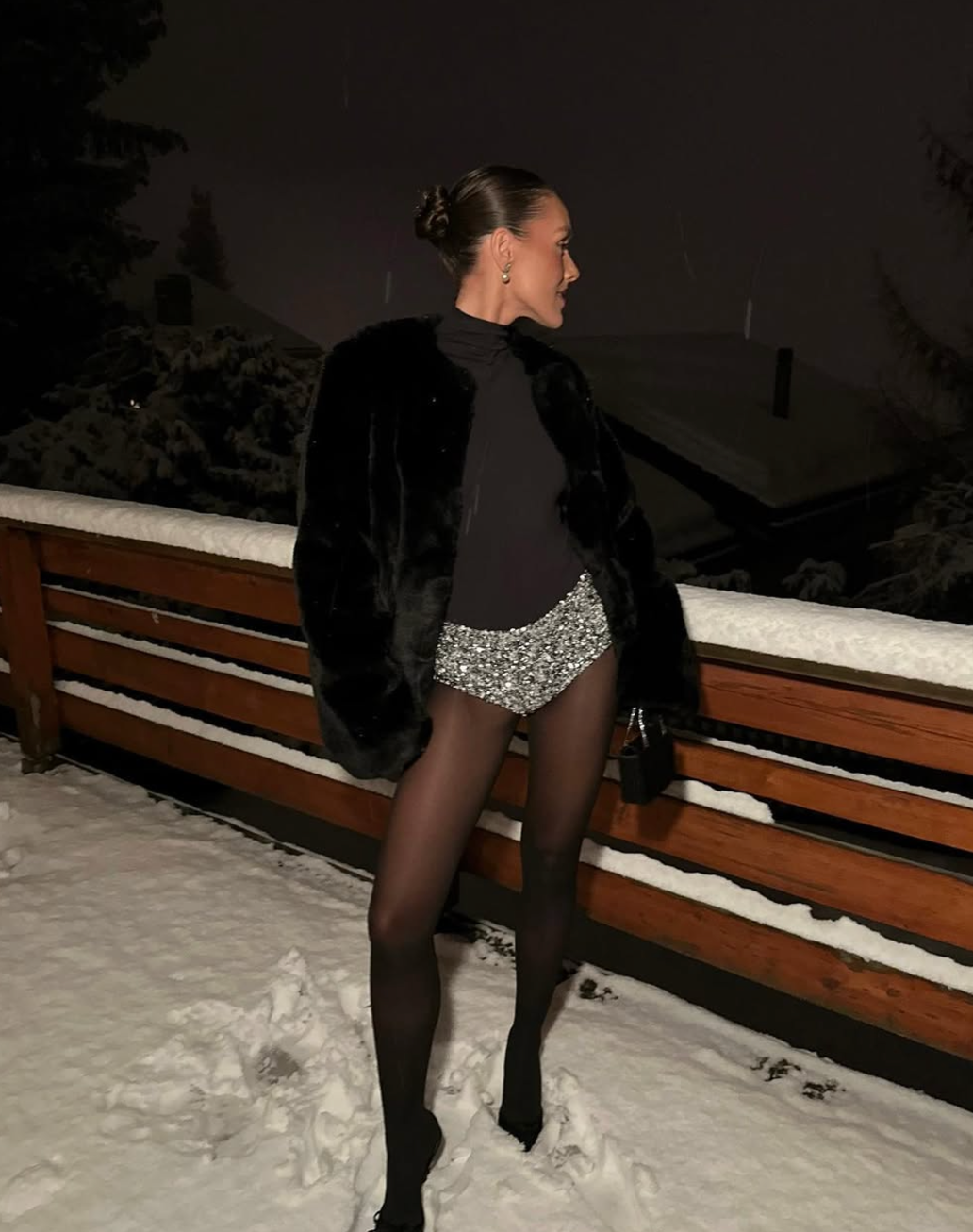 To, že jde o šortky, neznamená, že se hodí jen na léto. Oblékněte si tyto božské třpytivé kraťasy s černými punčochami, černým rolákem a černým kožíškovým kabátkem a máte vyhráno: zůstanete v teple a ještě budete styloví! Všem bude jasné, že sledujete trendy, protože přesně takové šortky jsou hitem letošní sváteční sezony.