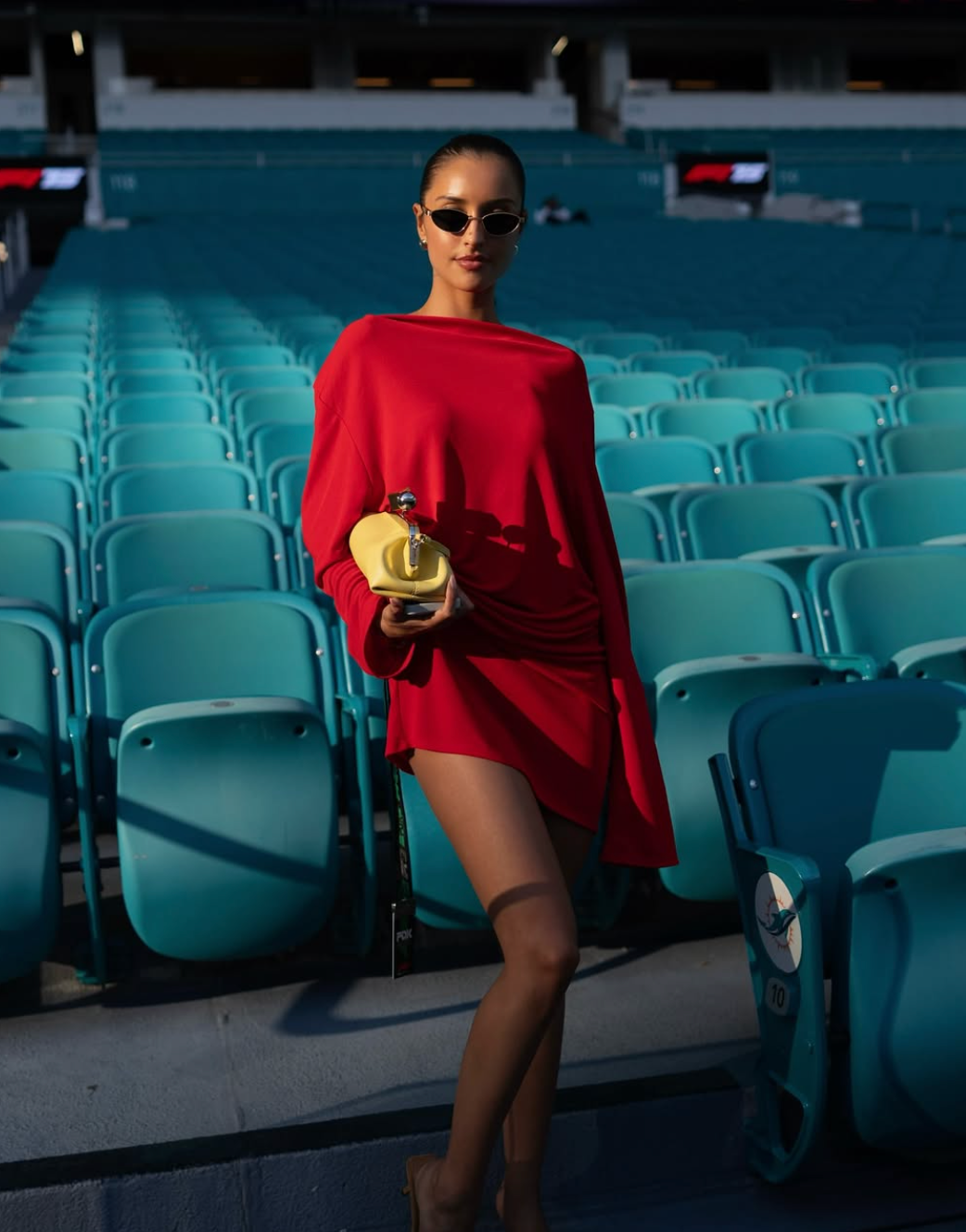 Možná nemůžete mít Charlese Leclerca, ale styl Alexandry Saint Mleux mít můžete. Její styl je ukázkou nenucené elegance, která mistrně spojuje klasický minimalismus s moderními a módními detaily. Protože je její přítel závodníkem Ferrari, bylo to letos na Miami Grand Prix jasné – oblékla si šaty Jacquemus v ikonické červené barvě Ferrari… jak jinak!