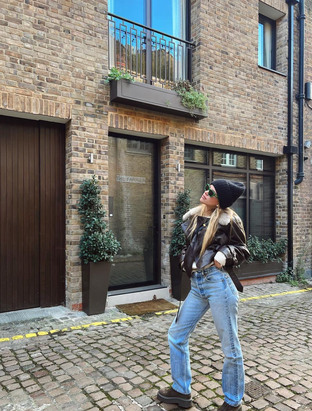 Je jednou z našich nejoblíbenějších módních ikon. Její outfity jsou vždy nenuceně cool. Často nosí oversized a jednoduché kousky. Příklad? Oversized bunda plus bílé basic tričko a džíny doplněné mini slunečními brýlemi. Vedle toho u ní nepřehlédnete zlaté detaily na botách, pásku a náušnicích.