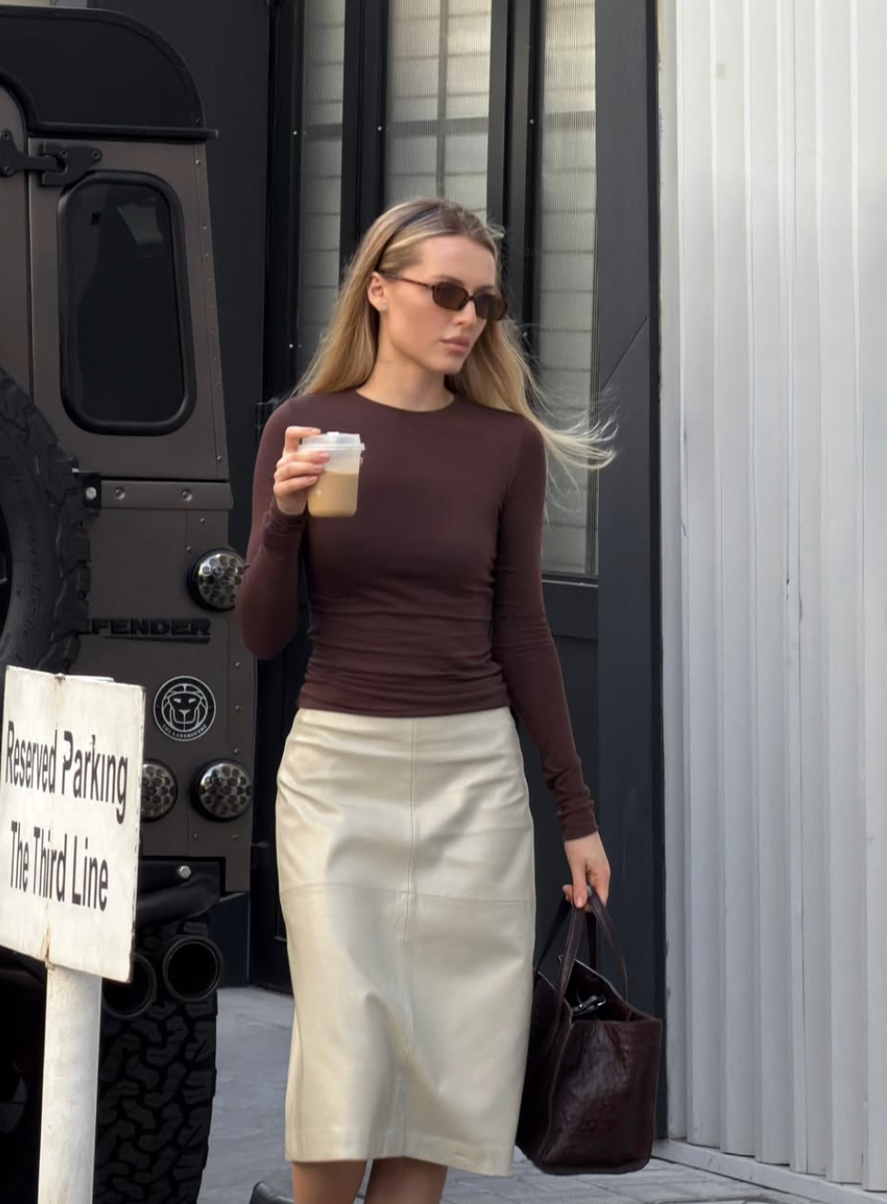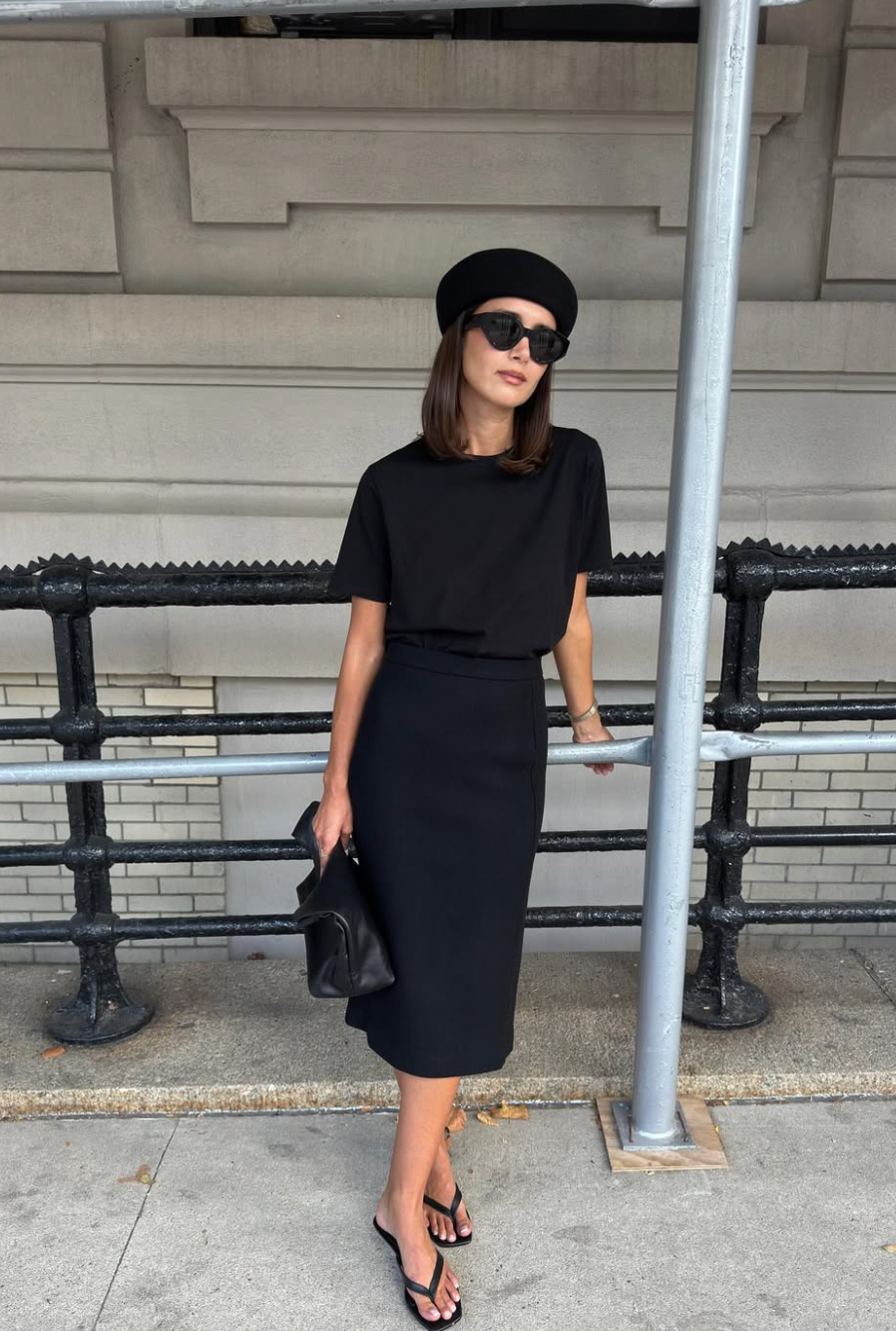 Tady není moc co dodat, černá s černou v outfitu, který funguje opravdu pro každého. Pokud si ho chcete přizpůsobit svému stylu, zaměřte se na doplňky. Zvolte například klobouček typu pillbox, kitten heel sandálky a měkké psaníčko. Je to jednoduché, chic a nekonečně variabilní. Přesně ten typ outfitu, ke kterému se budete vracet znovu a znovu.