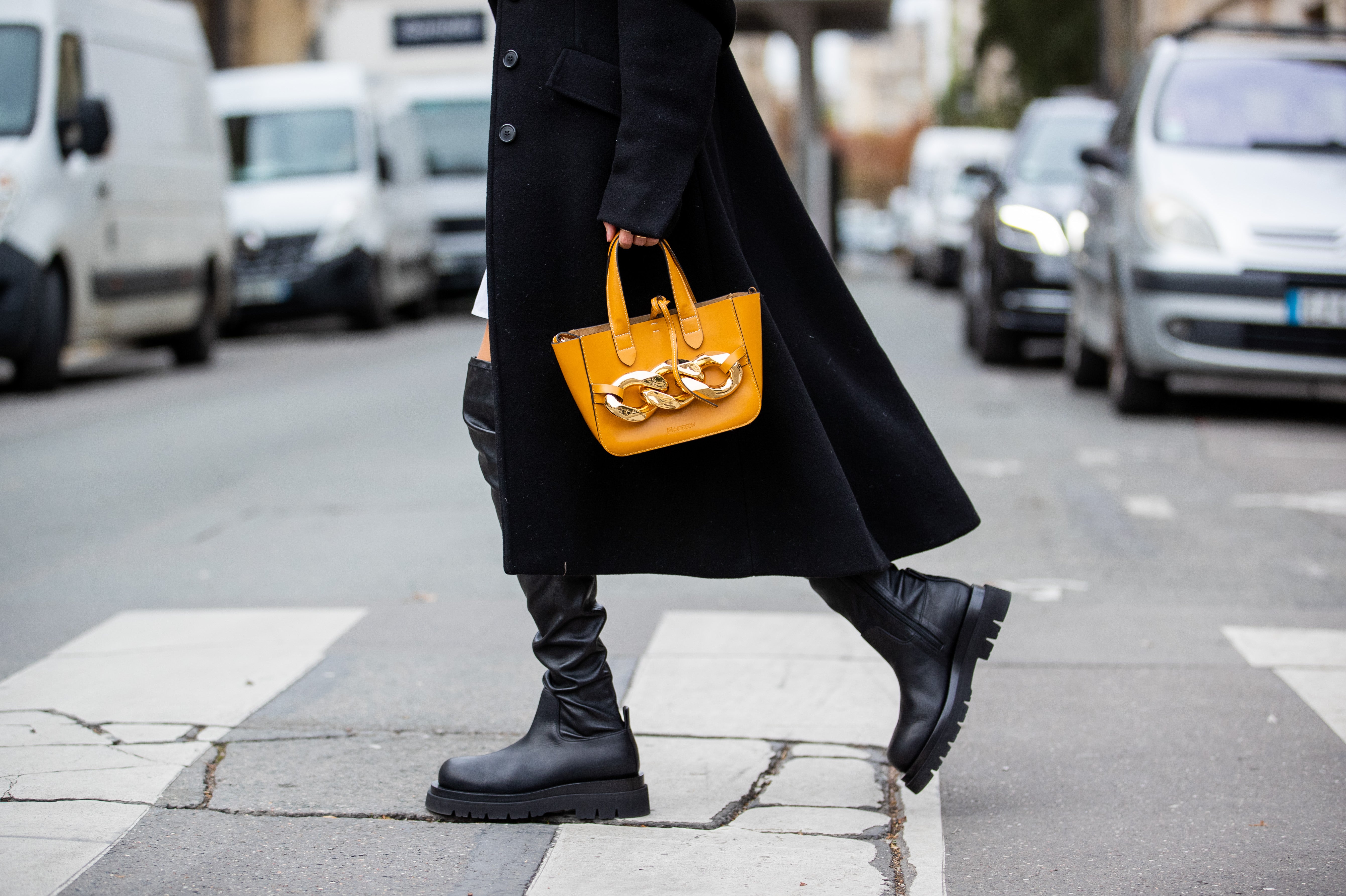 Dad sneakers jsou stále populární kdykoliv, kdekoliv a k čemukoliv. Nosí se také boty s vysokou podrážkou (Bottega Veneta), baleríny a – zhluboka se nadechněte – crocs. Všechny dodají outfitům vše, co potřebujete. Nebojte se experimentovat, výsledný look vás dost možná překvapí.