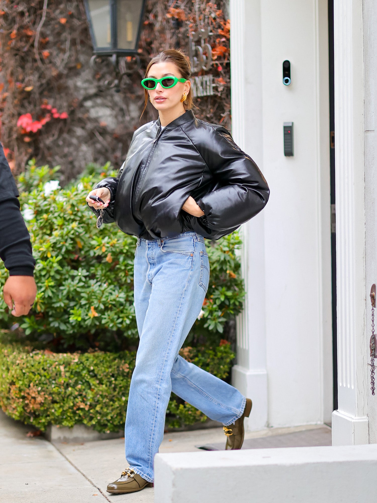 Hailey Bieber v černém bomberu, prosinec 2022