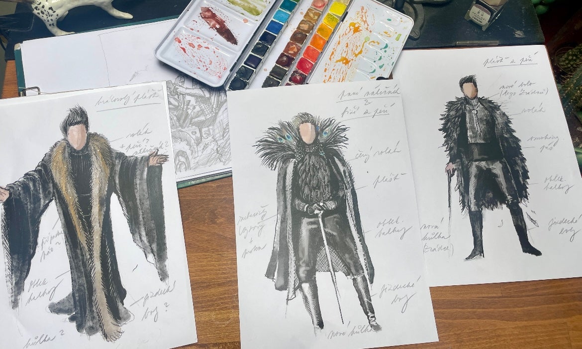 Oblékáme všechny, kdo jsou před kamerou vidět. Nechala jsem ušít zelené zrádcovské pláště, ve druhé řadě přibyly také pláště vínové. V letošní řadě, stejně jako v té loňské, se oblékají všichni kaskadéři a herci – ty vidíte na misích jako zbrojnoše, rytíře, hrobaře, žebráky. Letos bylo také třeba do jedné mise navrhnout a nechat pro hráče vyrobit kožené masky a dát jim pláště. Někdy se proto oblékají i hráči v misích.