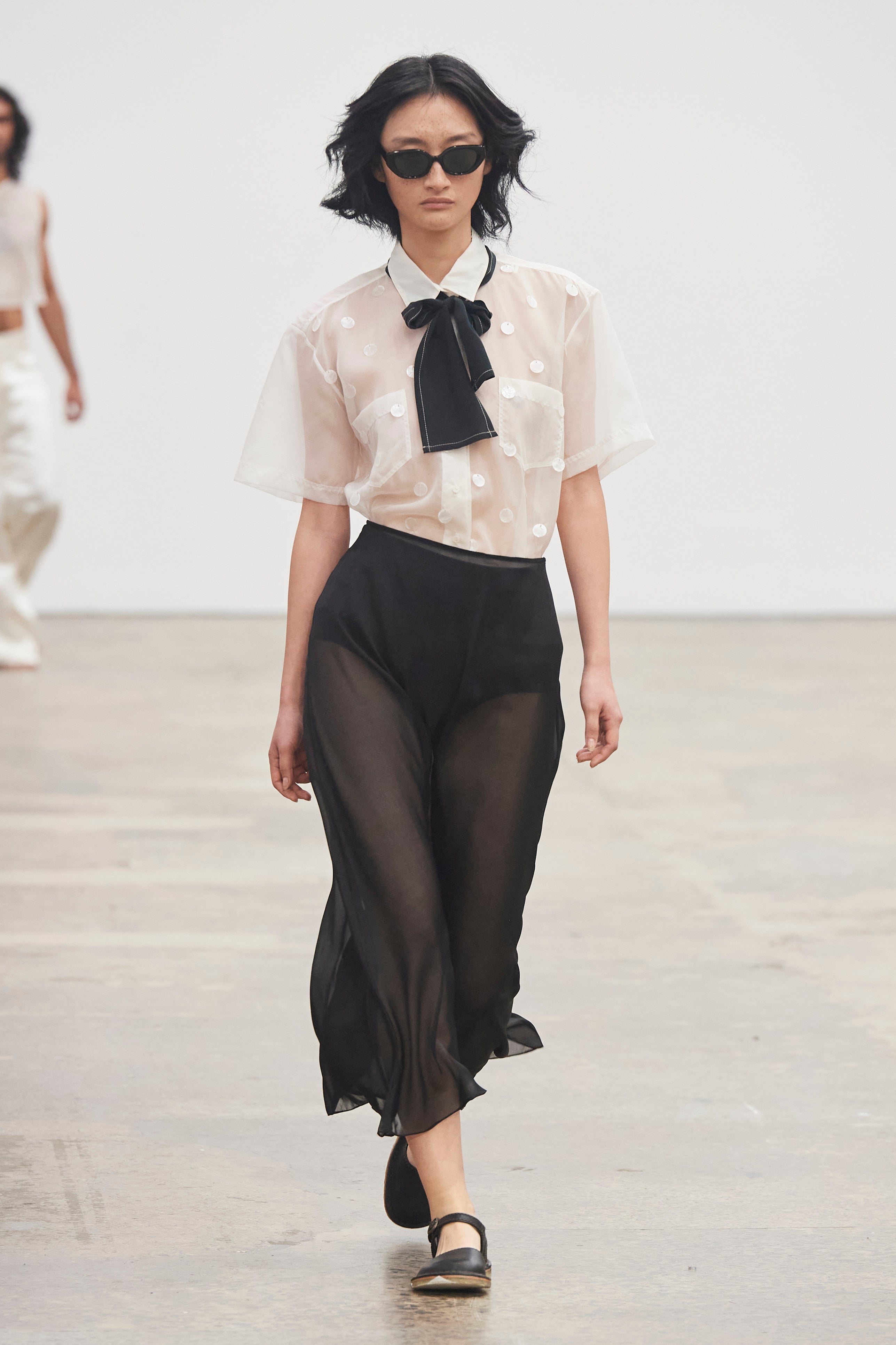 Do kancelářského a byznysového kontextu vrací kravatu značka Elisabetta Franchi, a to jak v kontrastním stylingu, tak v dokonale sladěných setech, v nichž pruh látky kolem krku elegantně ladí se sukní a sakem. Experimentální kravaty byly k vidění u značky Avavav nebo Vaquera, ať už šlo o netradiční střih, nebo potisky, které se opticky snoubily s tiskem na košili. Čistý, nadčasový pánský styl vzdávající hold vysoké krejčovině s dokonale vypointovanými kravatami jako vrchol looku byl na podzim – zimu 2024 k vidění u Diora, Schiaparelli nebo Nehery. A nejkreativnější styling? Podívejte se u Ottlinger: Vrstvení košile a topů s kravatou je must have nadcházející sezony.