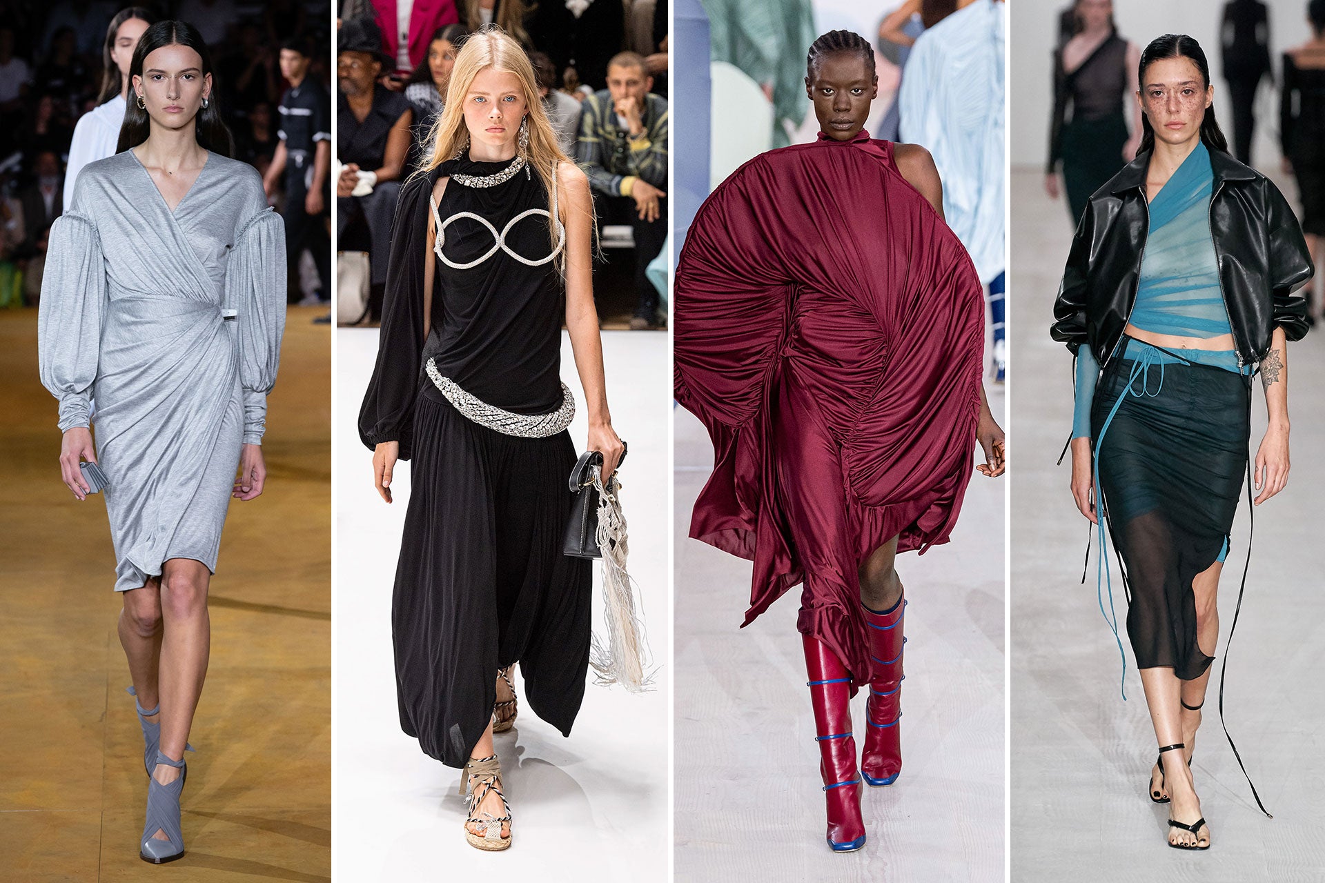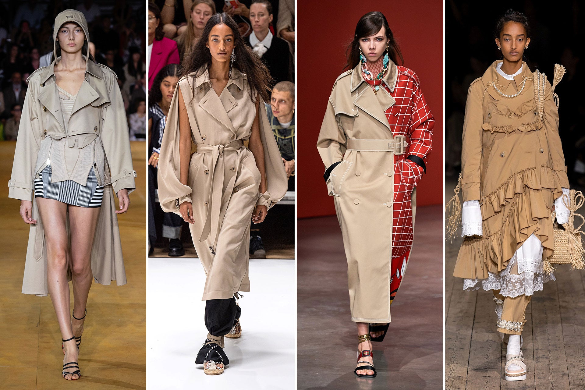 Kreativní ředitel Burberry Riccardo Tisci se vrací ke konzervativnímu britskému stylu, kterému fandí Rosalía i Hunter Schafer. Pro módní návrháře neztrácí klasický trenčkot nic ze své hvězdné přitažlivosti. Může dát vyniknout korzetovým minišatům nebo odhaleným pažím (JW Anderson).