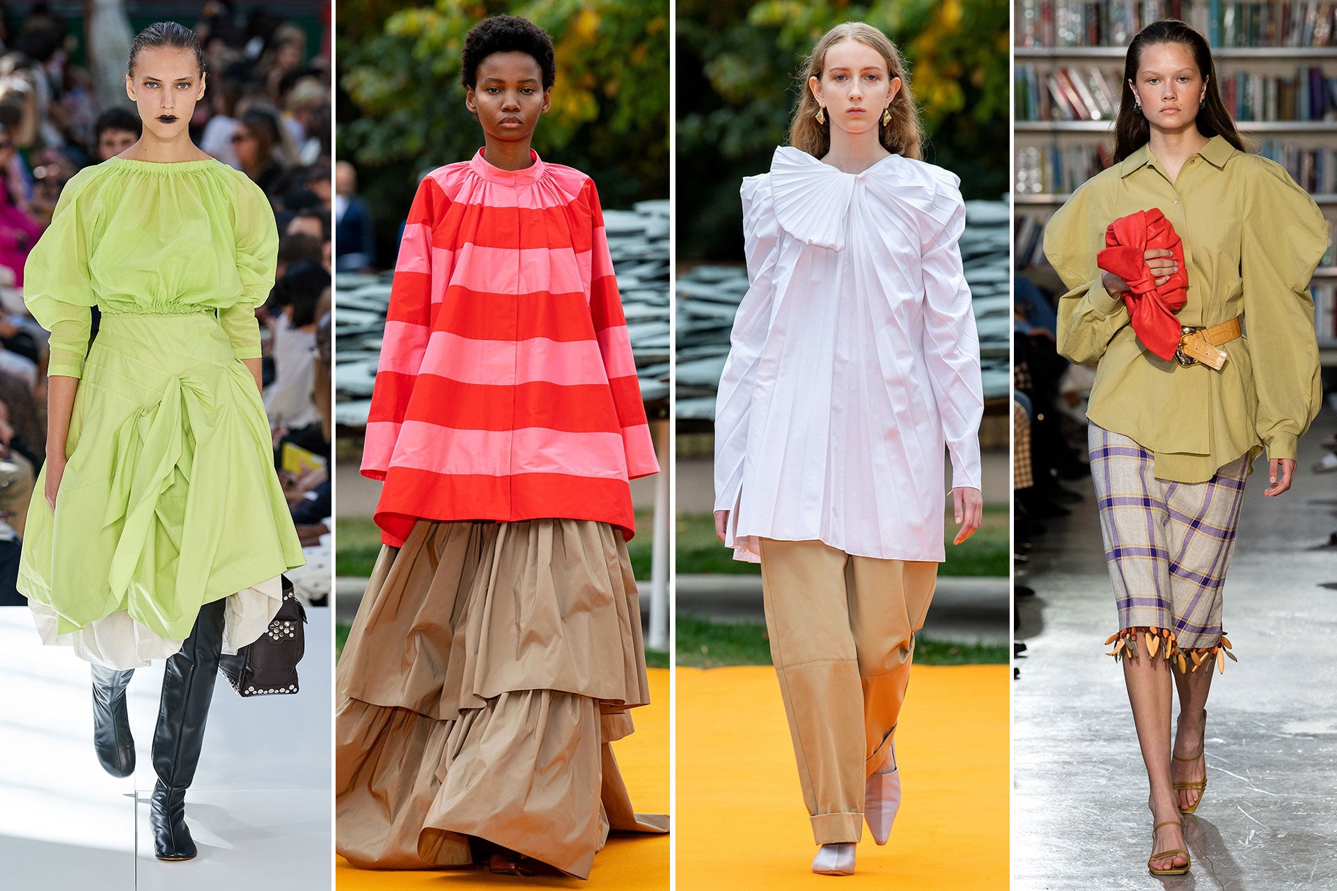 Milostný románek sezony AW19 s objemnými róbami zatím nevyhasíná. Výrazné siluety šatů se rychle stávají vrcholem londýnských přehlídek a návrháři zachovávají salonní náladu. Podívejte se na modely Simone Rocha: mírně nadýchané a s kulatým výstřihem, které podtrhly nádhernou přehlídku kolekce SS20 v kdysi zapomenutém divadle v severním Londýně.