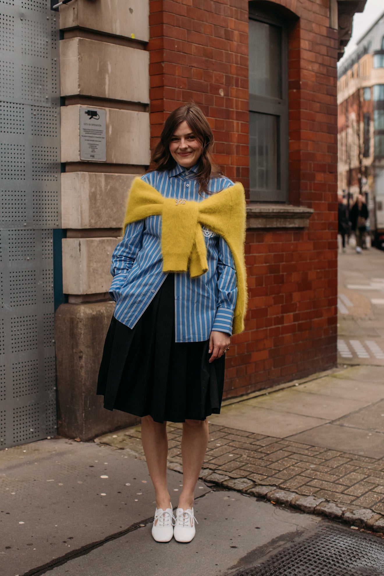 Pouzdrová sukně, košile, kozačky a dlouhý kabát tvoří kombinaci, která je nadčasová, funkční a vždy elegantní. Zároveň ale může snadno působit až příliš uhlazeně. Právě proto je osvěžující do tohoto klasického základu přidat svetr uvázaný kolem pasu nebo okolo ramen. Nejde o praktickou vrstvu, ale o čistě stylingový prvek, který narušuje symetrii a dodává outfitu texturu i lehkou ležérnost. Svetr může být barevný, vzorovaný nebo jen s výraznější materiálem, jako je mohér. Důležité je, že opticky rozbije jinak velmi čistou siluetu a posune celý look směrem k současnému street stylu.