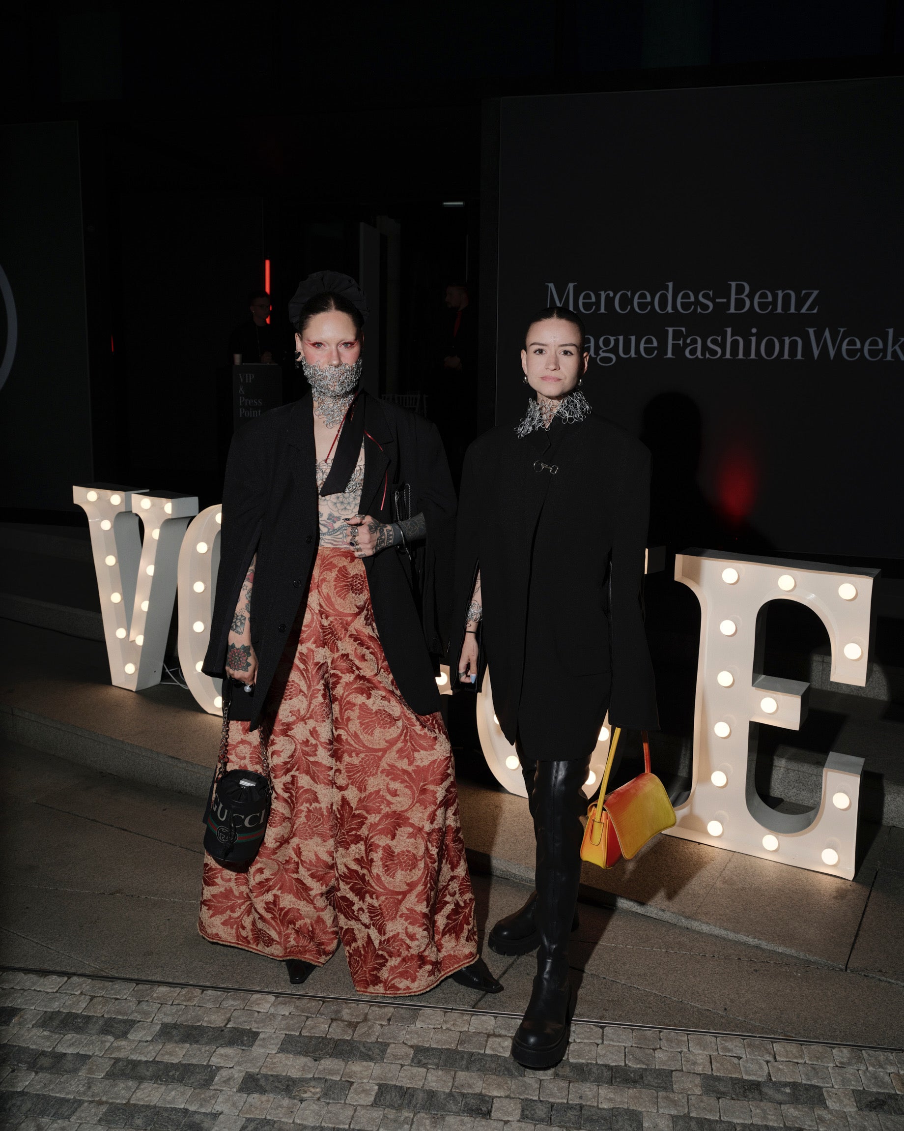 Za výslednou podobou přehlídky stála i spolupráce s generálním partnerem, který ji pomohl usadit do prostoru. Hosté mohli během večera popíjet G.H. Mumm. Svítící písmena zas poskytla další vizuální vrstvu celé prezentace Vogue CS.