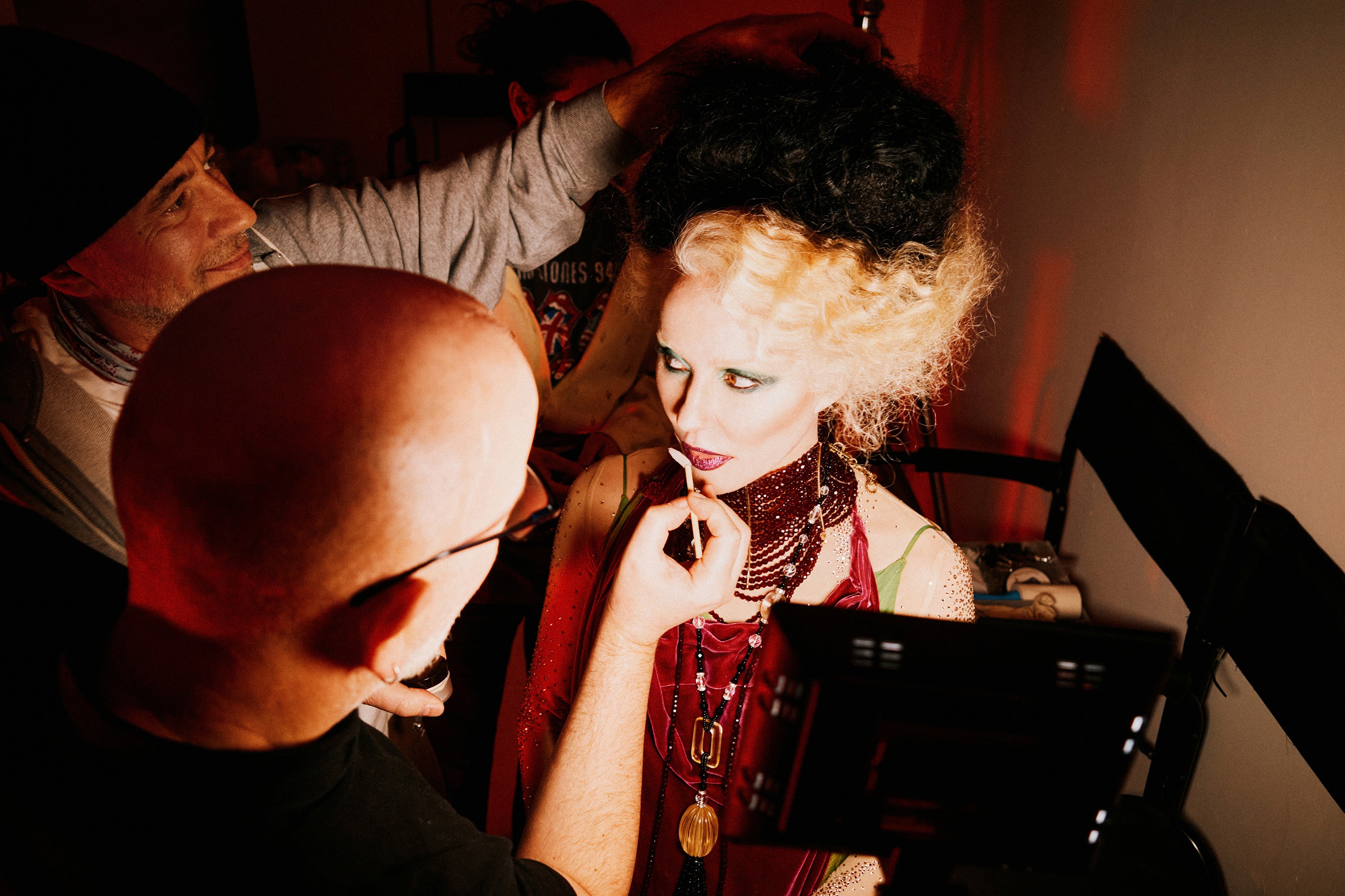 Náš tým dostal „access all areas“, takže jsme během celé produkce měli neomezený vstup do šatny, make-up roomu. Bylo fascinující pozorovat, jak se persona Daphne nijak zásadně nemění, ať už je zrovna on stage, nebo off stage. Haute couture nosí pravidelně i v civilu, a proto excentrické až muzejní modely, na ní nepůsobily kostýmově, ale jako přirozená součást její osobnosti. Existuje jen velmi málo lidí na světě, kteří dokážou v couture působit autenticky, bez ohledu na kontext situace.