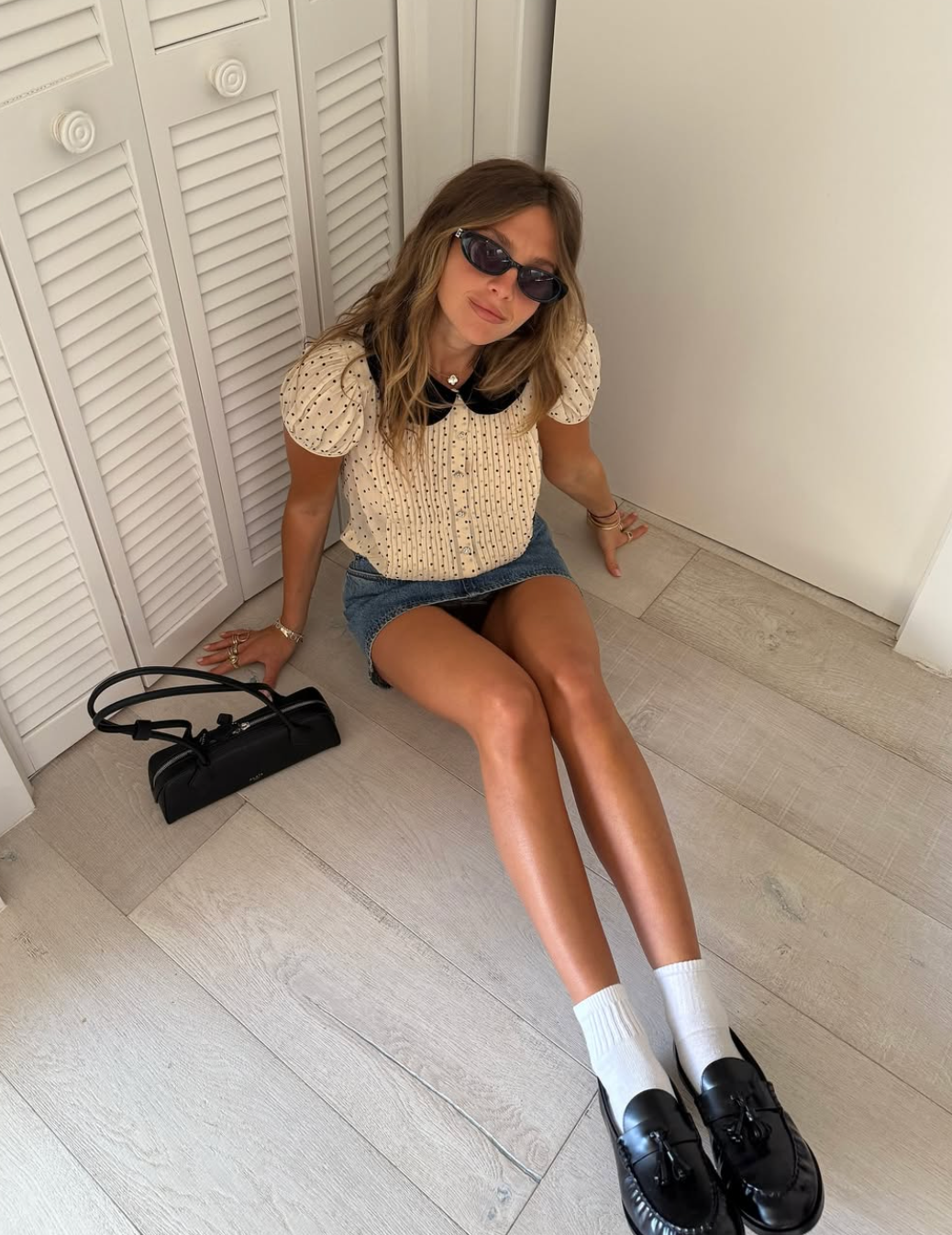 Tohle je rozhodně odvážnější kombinace, ale léto je právě ideálním časem na módní experimenty. Abyste kombinaci ponožek a podpatků zvládla s přehledem, zvolte lodičky s uzavřenou špičkou a doplňte je jednoduchým outfitem, například jako v tomto případě.