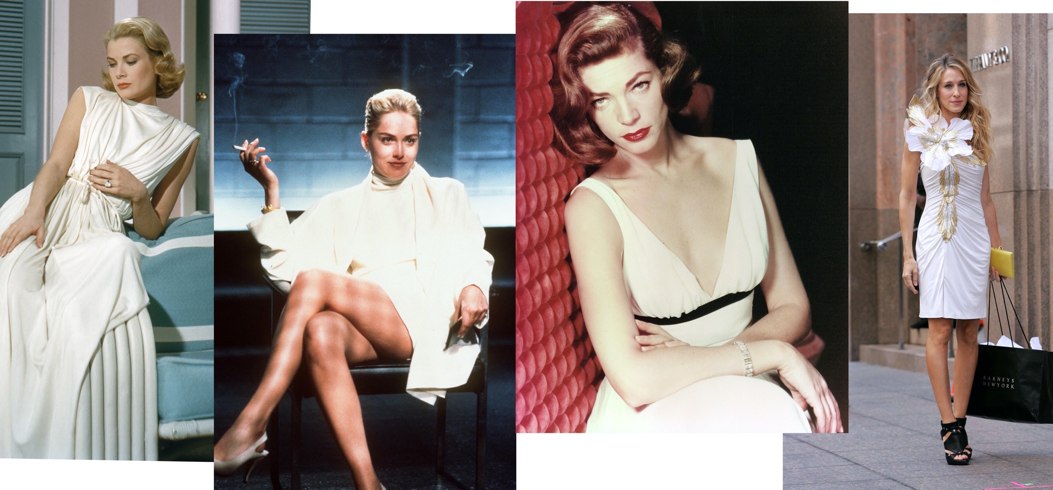 Jihu proti Severu. Lauren Bacall a Elizabeth Taylor sehrály jedny ze svých nejzásadnějších rolí právě v bílých šatech a to samé lze říci i o Sharon Stone a