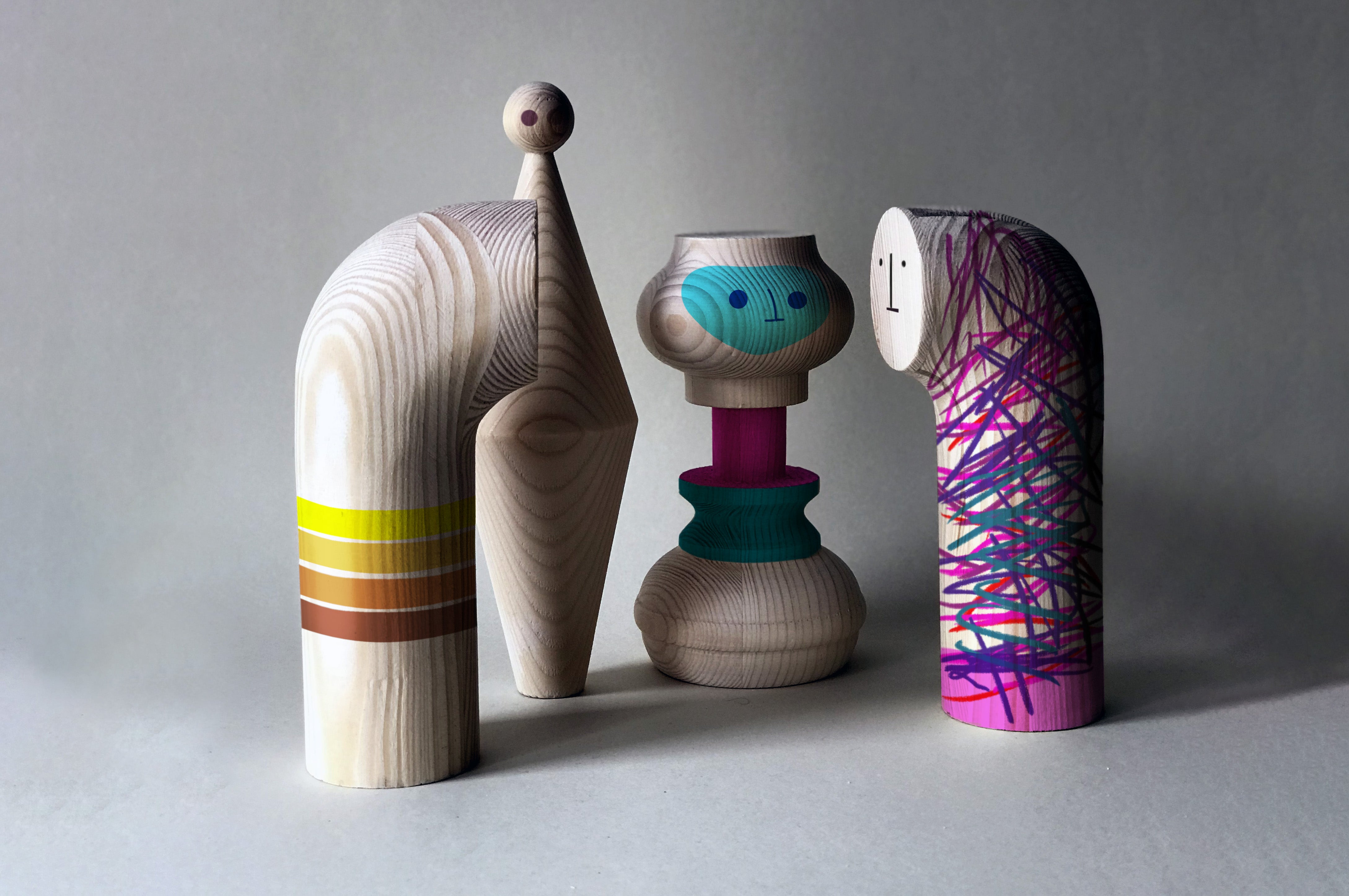 S ručně vysoustruženými a vyzdobenými soškami debutovala Tereza Talichová na letošním Designbloku, kde si rovnou odnesla cenu za Nejlepší kolekci bytových doplňků. Úctyhodné dřevěné objekty navazují na dřevěné prvorepublikové ikony, které tvořili například Minka Podhajská, Václav Špála nebo Josef Čejka.