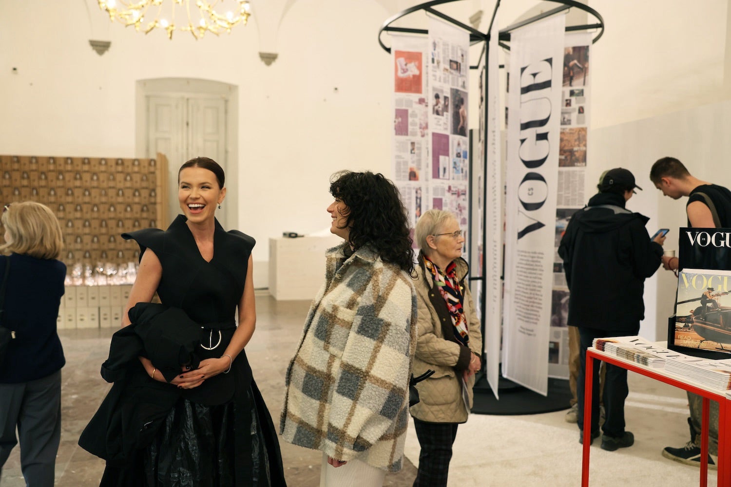 Po rozhovorech se hosté přesunuli k instalaci Vogue Curator’s Lounge, kde si mohli prohlédnout výsledná díla i doprovodnou expozici: kolotoč s Novinami Vogue x Designblok a tři monitory se smyčkou videí z tvorby autorů.