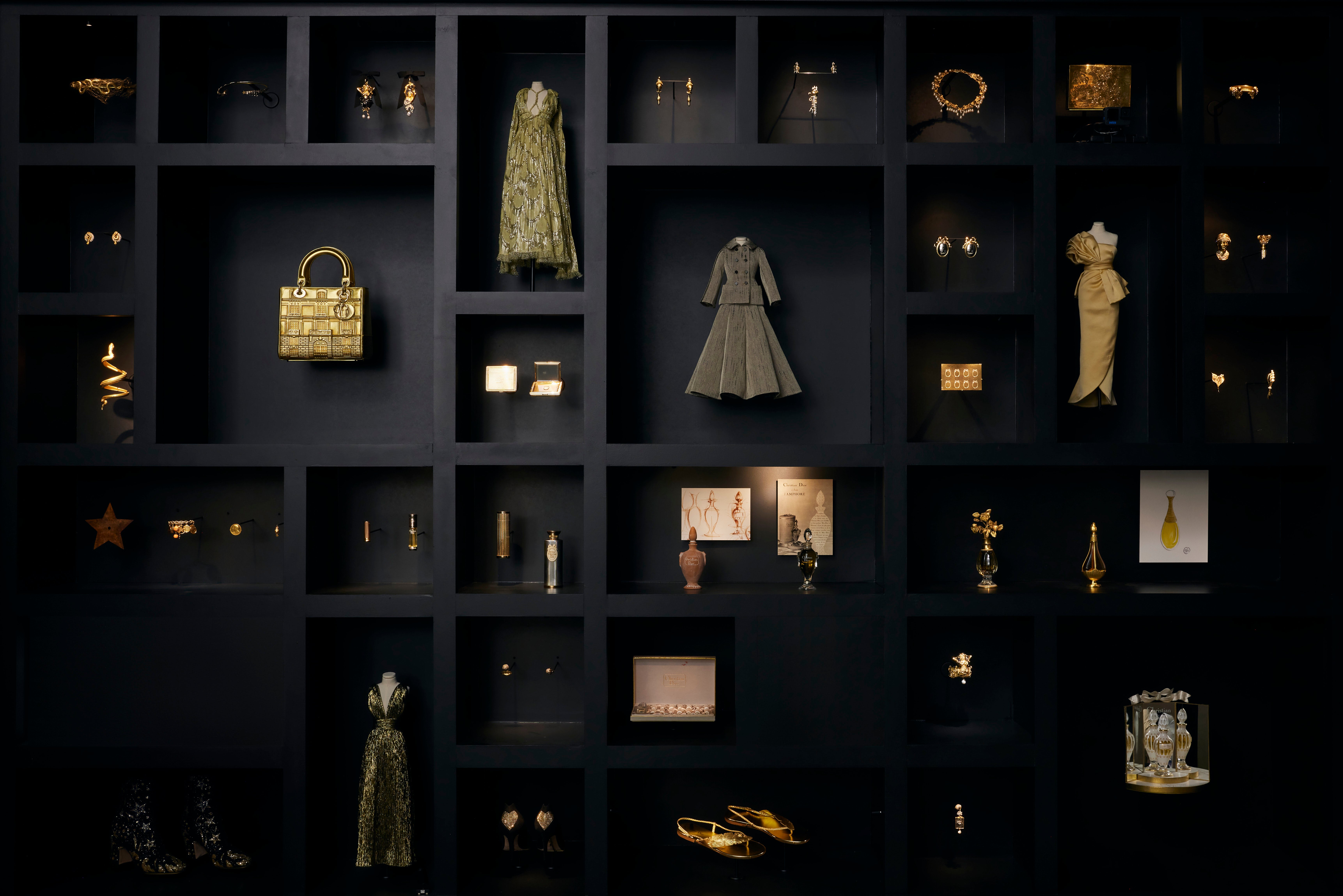 Hned při vstupu navede výstava návštěvníka do zlatého světa J’Adore. V něm se rovnou může ponořit do návrhářových vzpomínek na dětský domov Granville a Château de la Colle Noire, který se nacházel kousek od Grasse, nejproslulejšího francouzského parfumérského města. Archiv pak představí všechny verze známého flakonu připomínajícího ženskou siluetu.