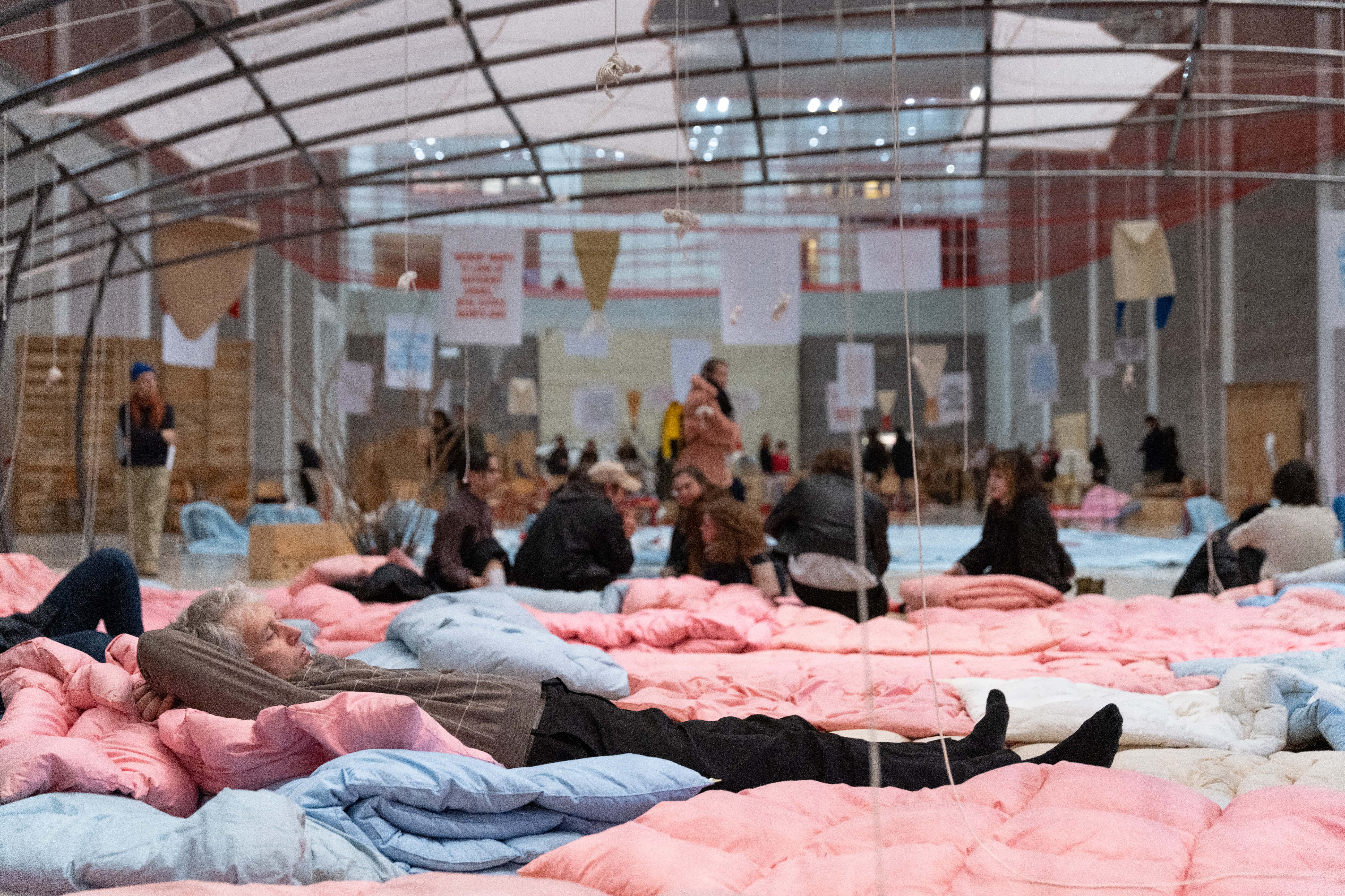 Při návštěvě výstavy se připravte na procházku tělem, obrazně i doslova. Výstava má totiž podobu obrovského těla, částečně rybího, částečně lidského. Každá její část nabízí jiný úhel pohledu na to, jak vnímáme tělesnost ve všech podobách a čeho se na ní dopouštíme. Každý fragment upozorňuje to, že jsme spolutvůrci výsledného obrazu a při procházení expozicí se stáváme její součástí. V břiše fragmentovaného těla leží různé krabice a přepravní bedny, které symbolizují pohyb a přesun, dobrovolný či vynucený, z jednoho místa či stavu do druhého. Duch celé instalace spočívá v kolektivním volání po životě, v němž má větší místo vzájemná empatie. Zažívat můžete nejrůznější emoce, které se nedaří tak snadno vyjádřit slovy. I proto je výstava koncipovaná tak, aby nabídla nejen zážitek, ale i prostor pro jeho vstřebání, najdete tu i odpočinkové zóny, díky kterým se možná zdržíte déle než byste sami čekali. Celá instalace, jako platforma otevřená všem, nabízí jak místa pro poslouchání nebo čtení, snění, odpočinek, sdílení příběhů, tak pro různé polohy těla a různou míru zapojení. Každou sobotu výstavu navíc doprovází vystoupení performerů a perforemerek.