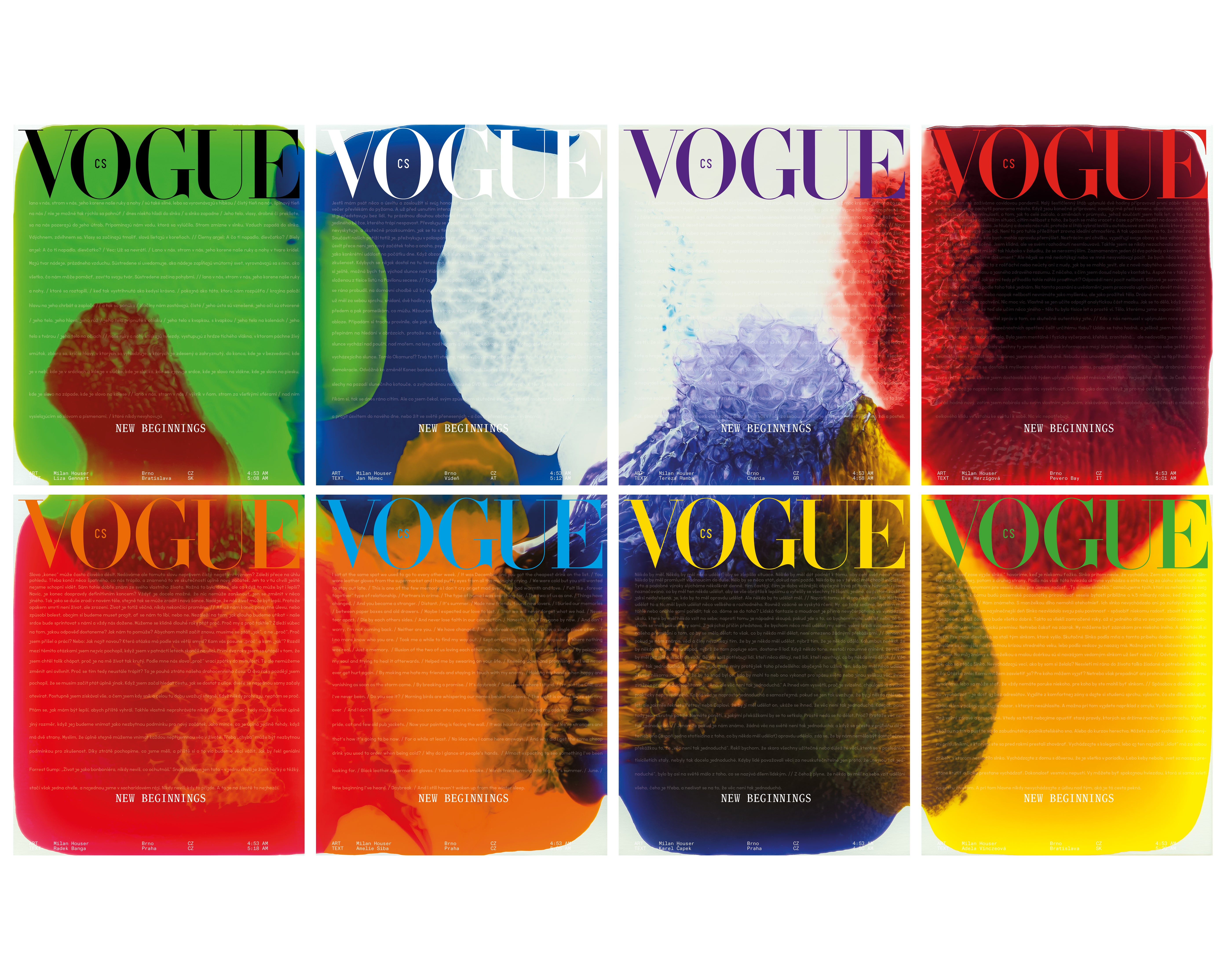 Už zítra vychází zářijová Vogue CS. Nejobsáhlejší vydání roku je letos věnováno novým začátkům a přináší osm verzí obálky. Každou zdobí jedna část nového obrazu výtvarníka Milana Housera a text jedné z osmi českých a slovenských osobností. Vůbec poprvé si můžete umělecké dílo na obálce zakoupit u všech prodejců, nejen v limitované edici, a také na pop-up místech v ČR a SR, kde bude k dostání speciální komplet všech osmi coverů. Rozhodnete se pro jeden, nebo všech osm a složíte si vlastní, unikátní obraz?