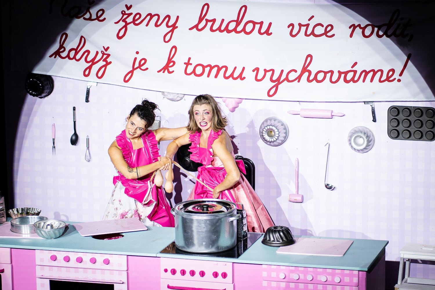 Tereza Holubová a Kristýna Štarhová nás provádějí každodenností života žen, počínaje tlakem na to, mít děti, přes objektifikaci až po sexuální násilí. A nechybí ani kabaretní písničky s tanci na téma „mužští odborníci nám vysvětlují, jak donutit ženy rodit“. A to vše se samozřejmě odehrává v kuchyni. Smích tuhne na rtech, v očích slzy. Kuchyňské porno je další divadelní počin, kterému by měli věnovat pozornost hlavně muži. Ostatně naše životy jako by byly často právě v jejich rukou. Jako třešnička na dortu působí vizuály k představení od fotografky Michaely Karásek Čejkové a působivá „pop“ výprava Zuzany Štěpančíkové. Po každém představení vás navíc čeká debata se zajímavou hostkou na současná feministická témata z různých oborů.