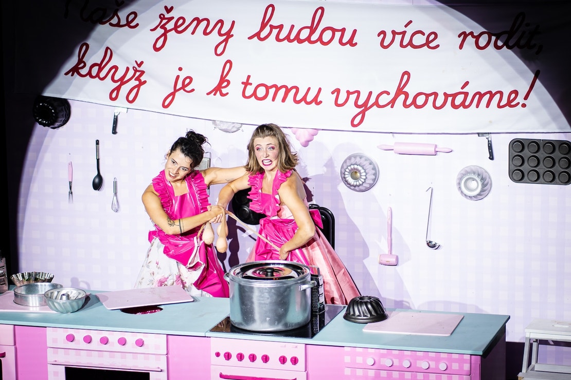 Tereza Holubová a Kristýna Štarhová nás provádějí každodenností života žen, počínaje tlakem na to, mít děti, přes objektifikaci až po sexuální násilí. A nechybí ani kabaretní písničky s tanci na téma „mužští odborníci nám vysvětlují, jak donutit ženy rodit“. A to vše se samozřejmě odehrává v kuchyni. Smích tuhne na rtech, v očích slzy.