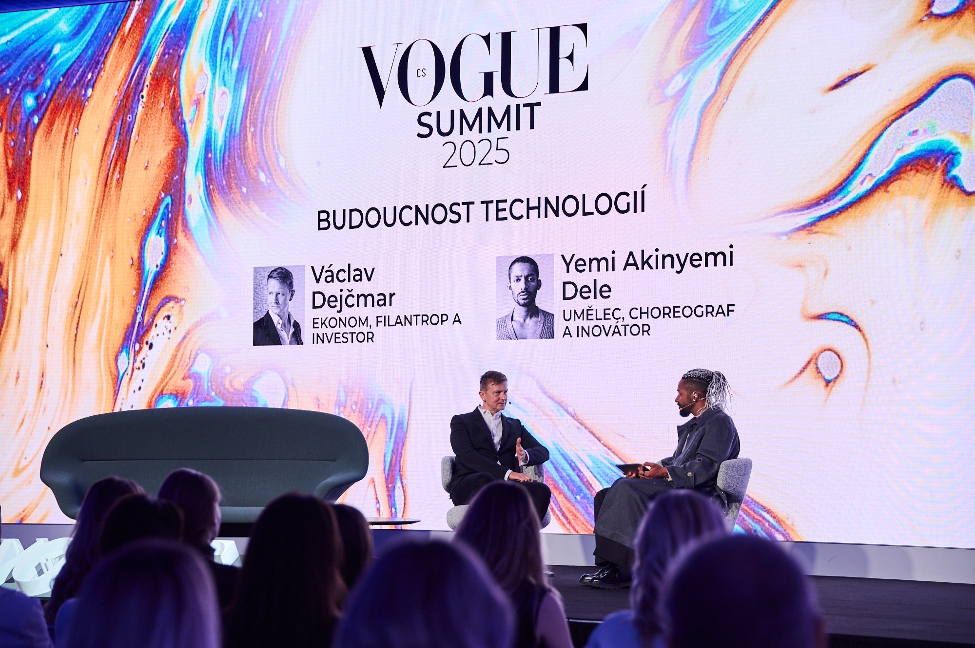 Kde má krása sílu, technologie tvar a sny se mění v realitu. Exkluzivní Vogue Summit 2025 představil vize budoucnosti očima těch, kteří ji skutečně budou utvářet. Odstartoval úvodním slovem CEO a vydavatelky Vogue CS Michaely Seewald. „Vogue není jen časopis, je to komunita a hnutí, které má sílu propojovat i inspirovat a staví na hodnotách jako autenticita, odvaha i empatie. Nebojte se jít si za svými sny, i když je to těžké. Vize je vaše hvězda, to, co vás žene dál a k čemu se můžete stále vracet a uvědomovat si, proč to vlastně děláte,“ řekla Seewald návštěvníkům konference, jíž provázela moderátorka a novinářka Nora Fridrichová. Posléze na stage doslova přitančil Yemi A.D., mimo jiné zakladatel platformy Moonshot, která sdružuje nejzapálenější, kreativní a talentované mozky mladé generace. „Život se odehrává v pohybu, v rytmu. Protože pohyb představuje svobodu a svoboda je nezbytnou součástí spokojeného života,“ řekl choreograf a tanečník na začátek programového bloku Mysl budoucnosti. Zdůraznil význam empatie i nebezpečí zpátečnického myšlení, načež posluchače v sále vyzval ke krátké meditativní seanci, během níž si měli představit linii vlastního života ubíhající pozpátku.