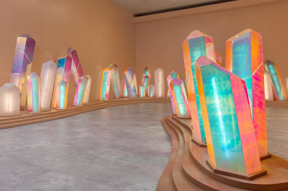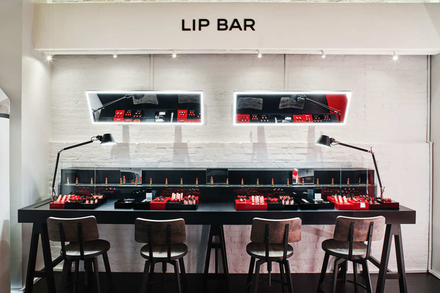 Do chrámu značky Glossier na Lafayette Street, která se během čtyř let stala miláčkem generace s ohromnou kupní silou, vedou červené schody s motivem křemene, obklopené sádrovými pastelově růžovými stěnami. Dvě patra o rozloze 510 metrů čtverečních má na svědomí designové studio Gachot ve spolupráci se studiem PRO. Interiér odráží estetiku obalů produktů, takže mu dominuje barva millennial pink s červenými akcenty a ASMR textury odkazující na bublinkové taštičky, do kterých se kosmetika balí. Podlaha z leštěného betonu kontrastuje s mléčnými skly a velkou rudou pohovkou ve tvaru rtů, která se táhne podél zdi. Populární produkty jako tyčinku na akné Zit Stick, řasenku Lash Slick a Milky Jelly Cleanser najdete na válcovitých podstavcích se speciálními drážkami vytvořenými na míru.