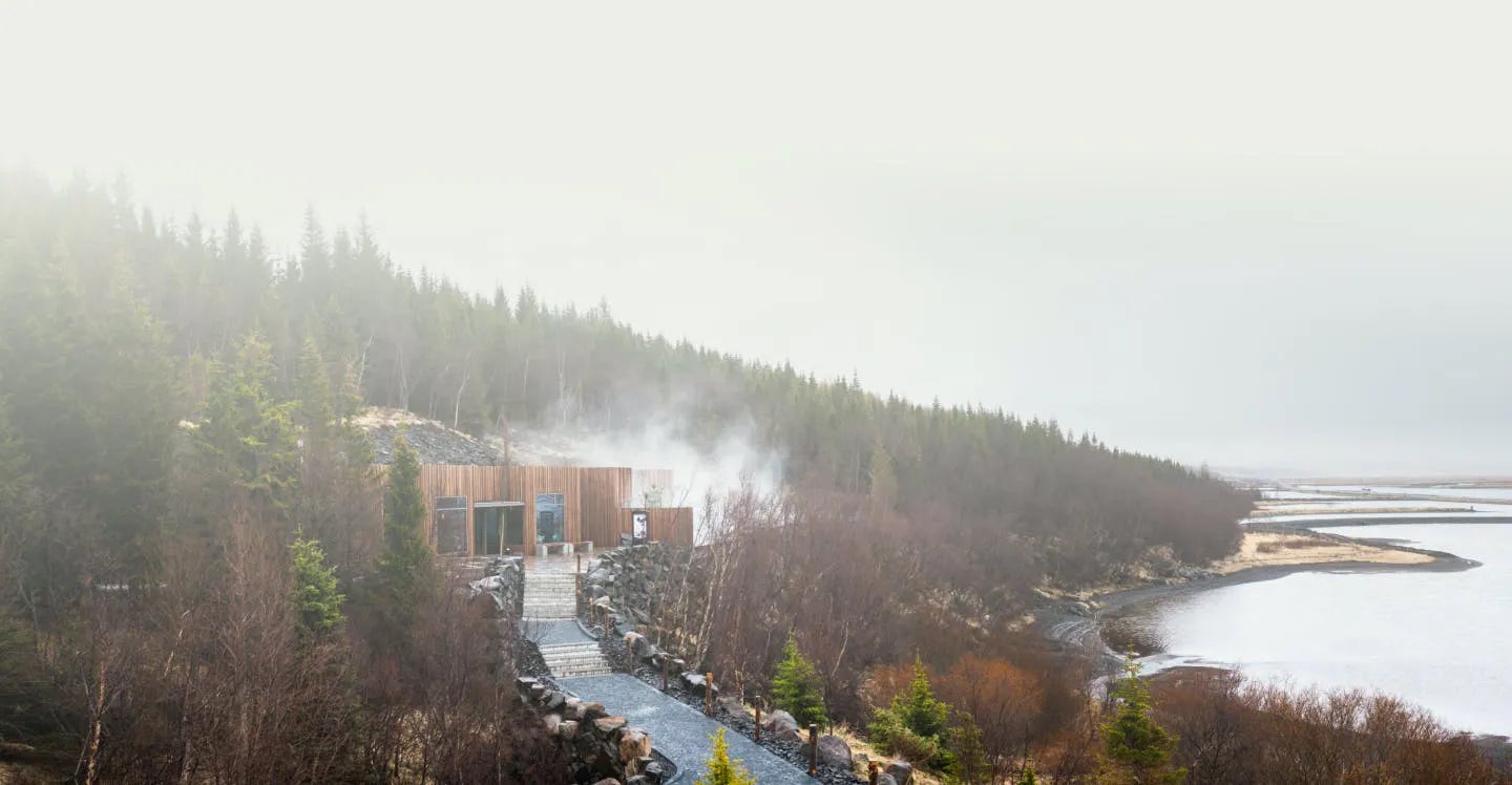 Forest Lagoon, poklidné lesní koupaliště, se nachází v divoké islandské přírodě Akureyri. Zdejší lázně jsou konkrétně v lese Vaðlaskógur, jehož vody vyhřívají přírodní geotermální prameny. Ty byly objeveny úplnou náhodou — během projektu ražby tunelu v roce 2015. Podobu současným lázním pak vtisklo studio Basalt Architects.