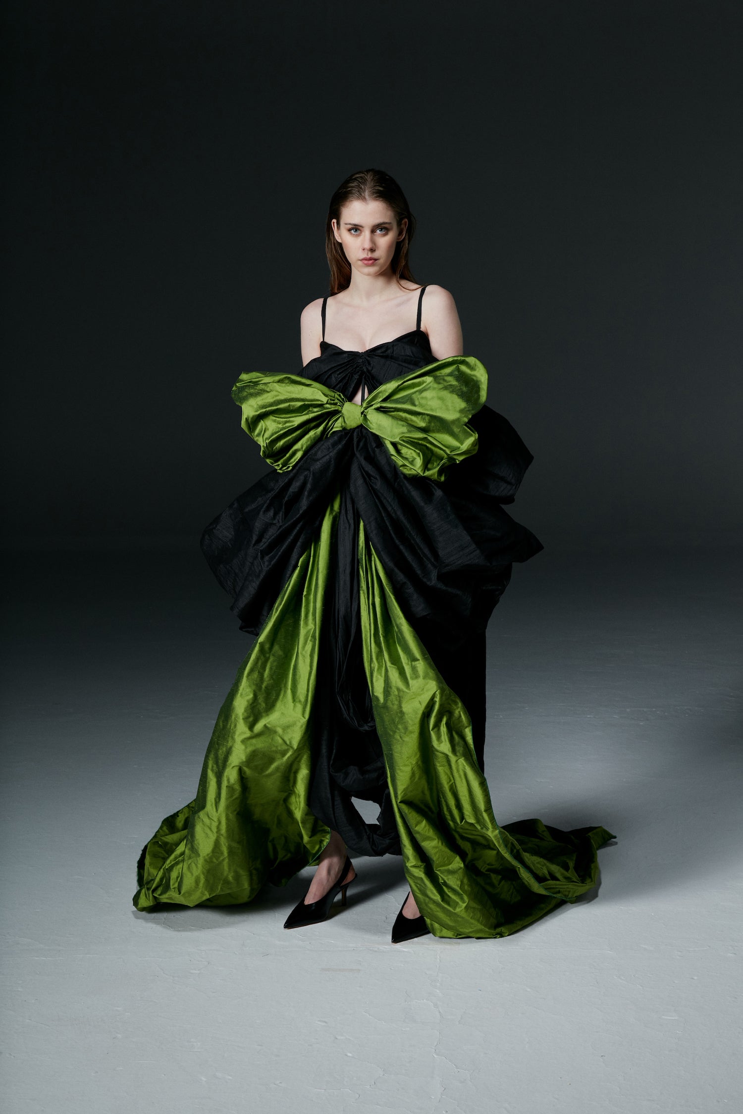 Pro módní přehlídku i lookbook celé kolekce zvolil Kohout čisté prostředí jako protipól k Maxspace v Pragovce, kde představil minulou kolekci v hravé scenérii plné barevných vjemů. Právě mezi bílými stěnami na betonové podlaze mohly šaty a drama do nich všité dokonale vyniknout. Nenápadně temná a jak jinak než dramatická dronová hudba postupně nabírala na intenzitě, ale dala vyniknout nepřeslechnutelnému zvuku šustění surového hedvábí na neméně surovém betonu. Když jsme se pár dní před prezentací s Kohoutem sešli, abychom kolekci probrali, nemohla jsem se nezeptat právě na soundtrack přehlídky. Přece jen hlavní motiv filmu z dílny Michaela Nymana je ikonický. Ale Kohout měl jasno, pouštět jej nebude: „To už by byl prostě kýč. Měl jsem návrh, že by tam dokonce přímo piáno bylo a hrálo by se na něj, ale ne!“ směje se. Volba temných dronů byla každopádně dokonalá. Stačily totiž pouze šaty, aby se vám v hlavě začal odvíjet film. Místo šatů jsem viděla mušle a organické tvary evokující pláž a nánosy, které na pobřeží vyvrhává příliv. Neodbytně se mi vracel nápad, že by byl Kohout skvělým kostýmním výtvarníkem, a když se zeptám, potvrdí mi to. Ano, jednou si práci kostýmního výtvarníka rád vyzkoušel. A co kdyby taková nabídka přišla nečekaně hned?